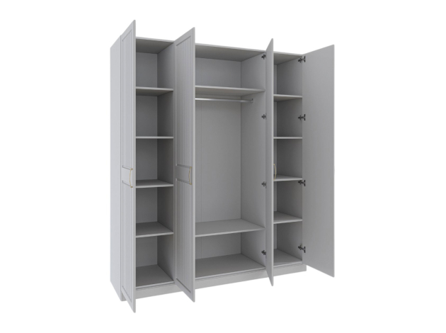 Распашной шкаф Леона Макси организует удобное хранение повседневной и сезонной одежды. Ручки в оттенке состаренного золота и фрезеровка на фасадах подчеркивают элегантный дизайн вместительной модели. Благодаря доводчикам дверцы закрываются мягко и бесшумно, что особенно важно для комфорта в спальне или квартире с открытой планировкой.