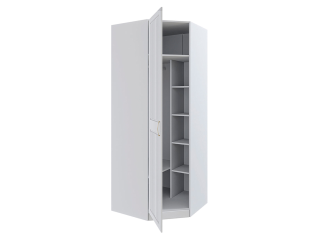 Угловой шкаф Леона позволит рационально задействовать пространство небольшой комнаты. Внутри расположены два просторных отделения со штангой и полками, где удобно хранить одежду из деликатных тканей, а также сложенный трикотаж. Рамочный фасад с фрезеровкой послужит украшением интерьера.