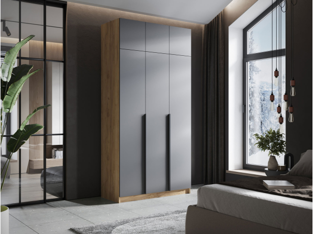 Распашной шкаф Лион Дуб Крафт золотой / Графит серый С антресолью