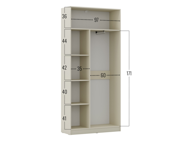 Распашной шкаф Лорето Мини обеспечит место для повседневной одежды и сезонных вещей. Внутреннее пространство оснащено поперечной штангой для вешалок и полками для хранения габаритных предметов. Элегантный дизайн фасадов легко интегрировать в разные интерьерные стили.