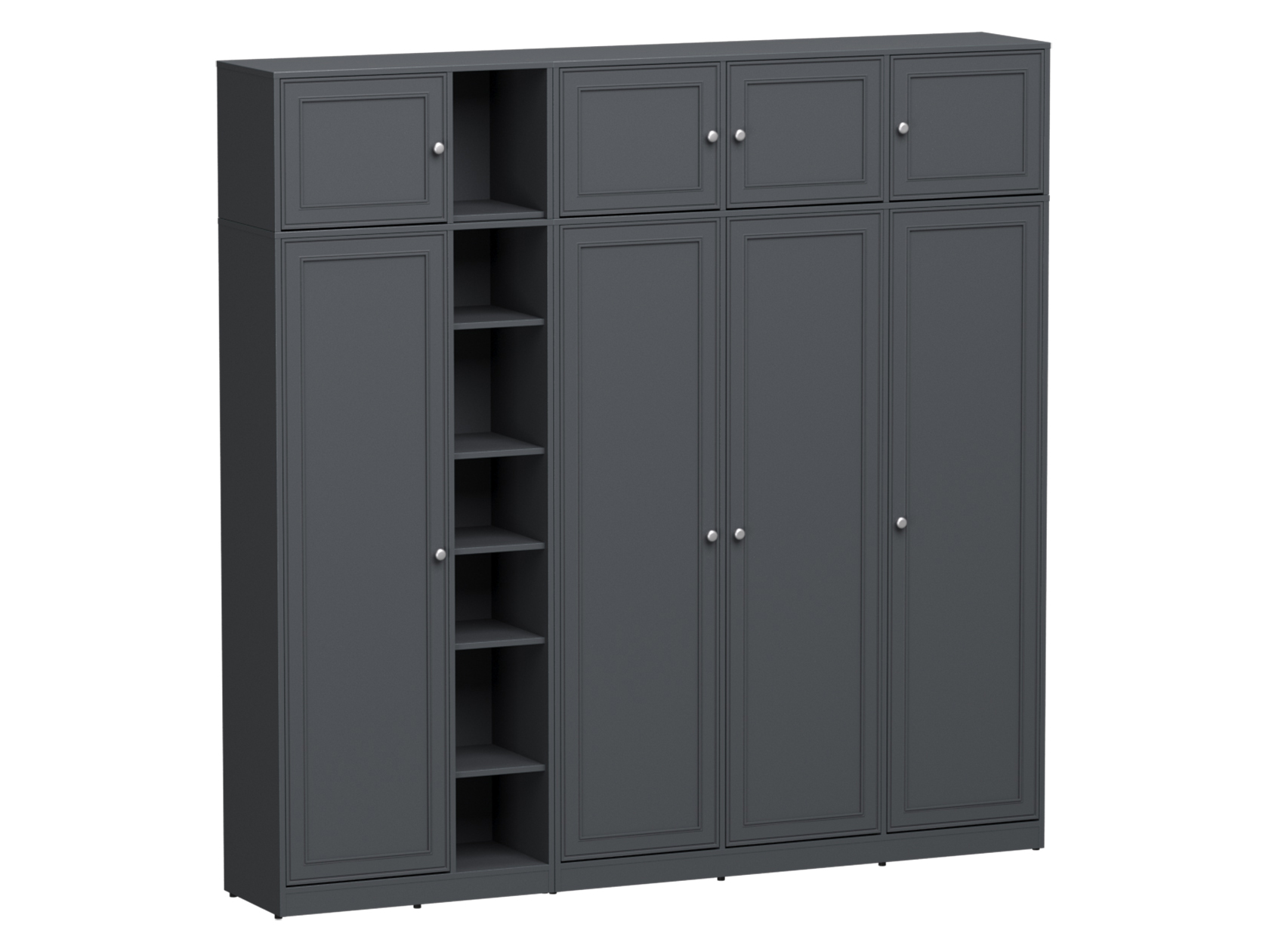 Распашной шкаф Люси Мини идеально дополнит интерьер комнаты с ограниченным пространством. Разнообразие секций позволяет разместить часть предметов на виду, а остальное можно хранить в закрытом от посторонних глаз доступе.