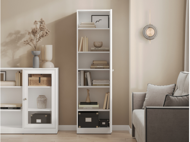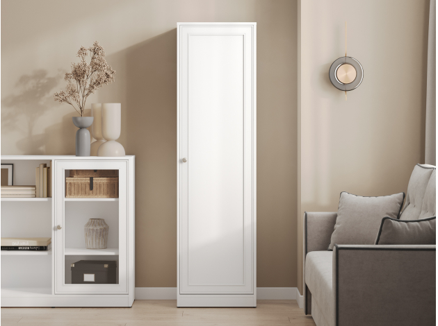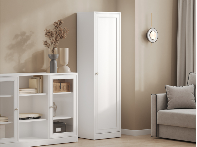 Распашной шкаф Люси 1 дверь практично дополнит интерьер небольшой комнаты. Полки позволят рационально расположить книги, документы, одежду и личные вещи. Классическое оформление с рамочным фасадом будет уместно смотреться в рабочем кабинете, гостиной или спальне.