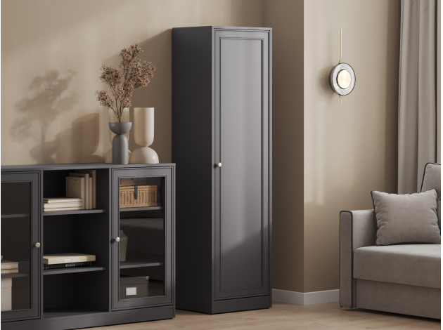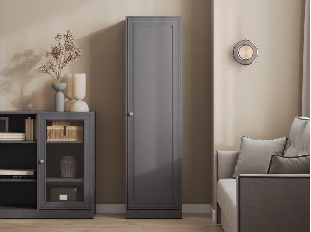 Распашной шкаф Люси 1 дверь практично дополнит интерьер небольшой комнаты. Полки позволят рационально расположить книги, документы, одежду и личные вещи. Классическое оформление с рамочным фасадом будет уместно смотреться в рабочем кабинете, гостиной или спальне.