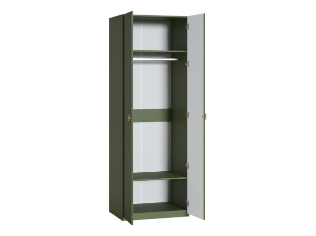 Распашной шкаф Марион Стандарт поможет поддерживать порядок. Внутри расположены ниша со штангой и две удобные полки для сложенных вещей, коробок и аксессуаров. Матовые фасады украшены лаконичными рамками и ручками в золотом оттенке. Такой дизайн смотрится очень элегантно и добавляет интерьеру индивидуальности.
