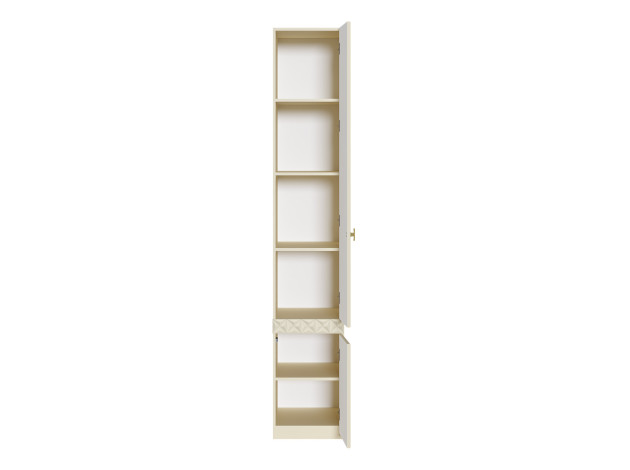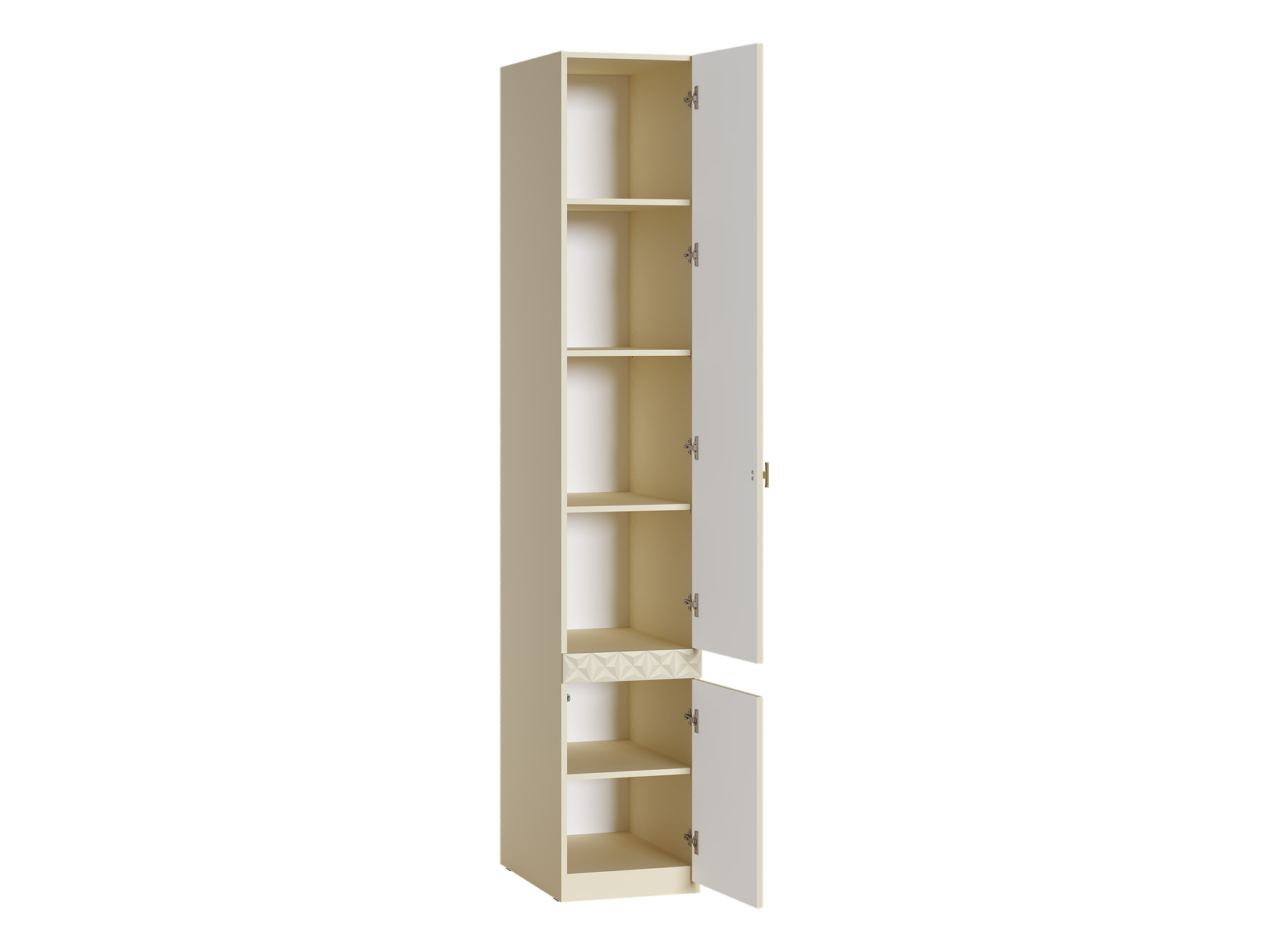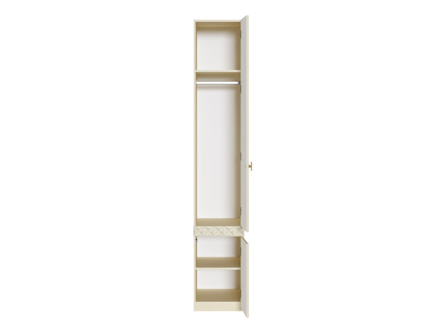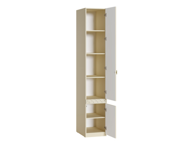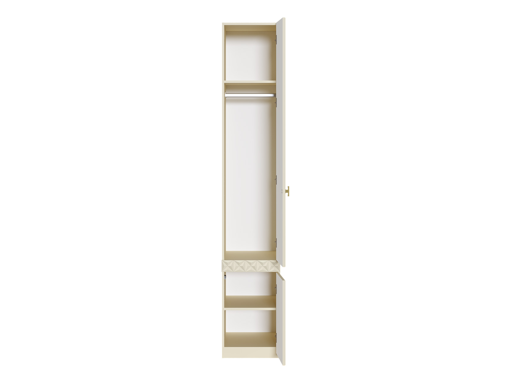 Шкаф-пенал Марион расширит возможности для хранения. Высокая узкая конструкция легко поместится в комнате с ограниченным пространством. Два отделения позволят распределить белье, текстиль и одежду. Оригинальная фрезеровка на фасадах подчеркивает элегантный дизайн модели, а фурнитура в золотистом оттенке выступает небольшим акцентом интерьера.