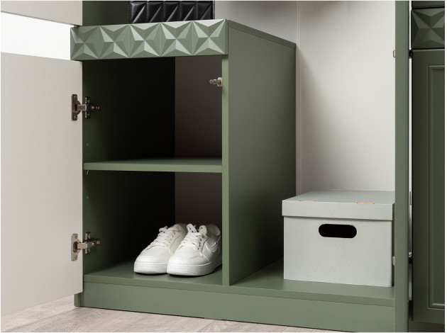 • Дымчатый зеленый, ЛДСП / Олива шагрень, МДФ / Олива, велюр