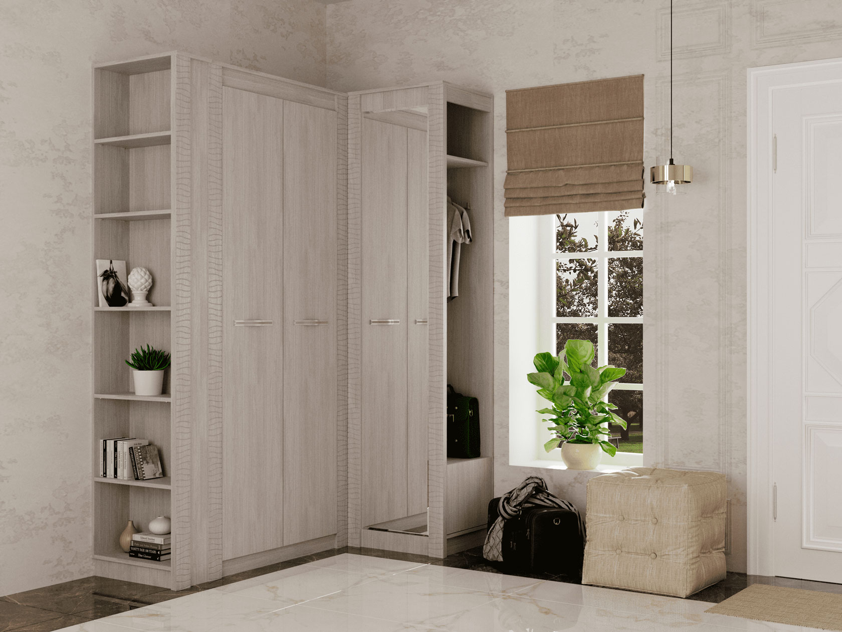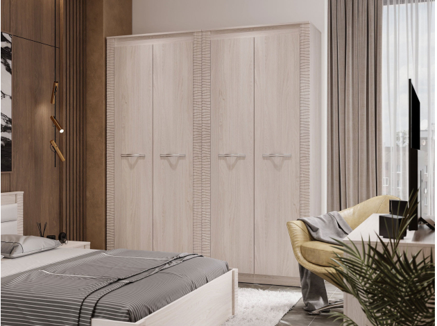 Распашной шкаф Монако подойдет для меблировки спальни, прихожей или гостиной. Функциональное внутреннее наполнение позаботится об удобном хранении предметов гардероба и крупногабаритных вещей. Декоративные элементы по бокам создают стильные акценты интерьера.