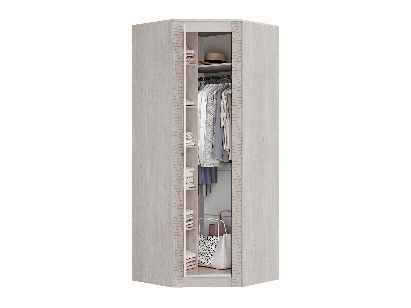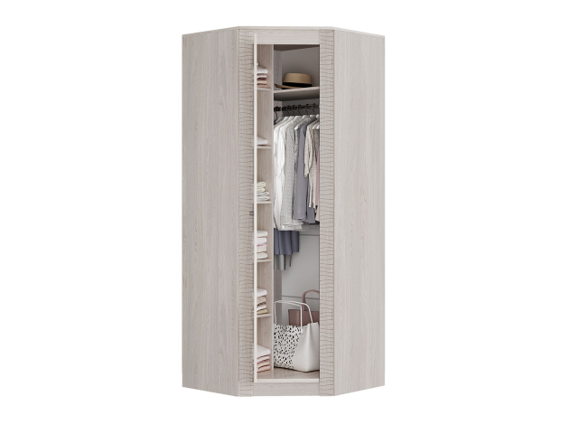 Угловой шкаф Монако обеспечит грамотное хранение разных категорий вещей. Вместительное пространство включает отделение со штангой для одежды любой длины, ряд полок для свитеров, футболок и джинсов, а также антресольную нишу, где можно расположить коробки. Привлекательный дизайн с лаконичной фрезеровкой по бокам гармонично смотрится в современном интерьере.