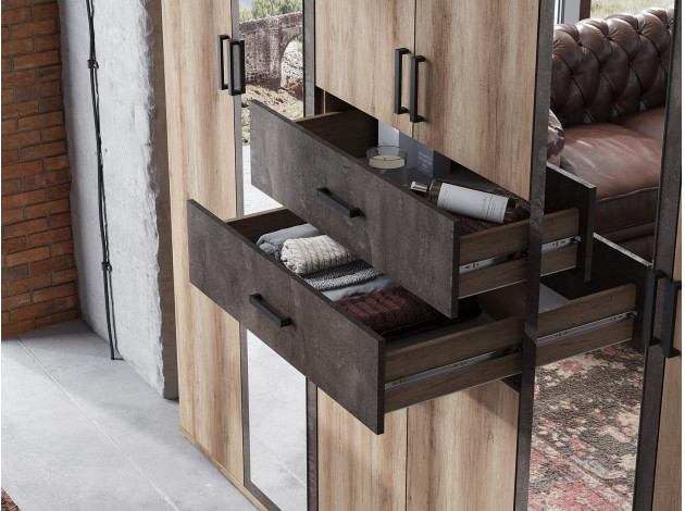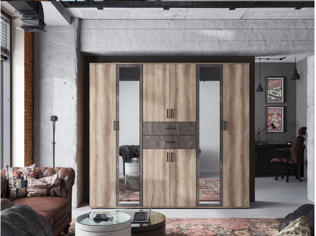 Распашной шкаф Нельсон 5 позволит аккуратно хранить одежду и другие предметы гардероба в сложенном виде. Выдвижные ящики по центру — очень удобное решение. Чтобы увидеть содержимое и найти нужную вещь, не нужно наклоняться и тянуться вглубь шкафа. Лаконичный дизайн модели удачно сочетается с большинством современных интерьеров.