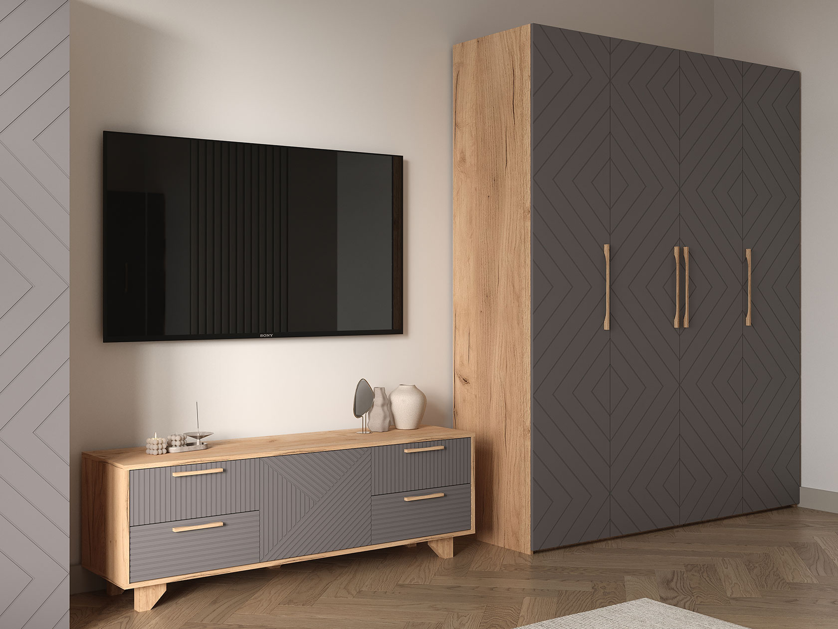 Распашной шкаф Ньерд 4 двери поможет организовать вместительную систему хранения любых предметов гардероба. Отделения за распашными дверцами позволят развесить одежду на плечиках и сложить всё необходимое на полках. Антресольная секция подойдет для сезонных вещей и домашнего текстиля.