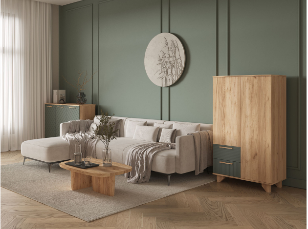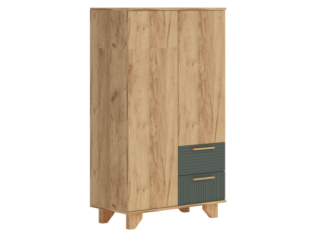 Распашной шкаф Ньерд станет функциональным дополнением обстановки. Внутреннее пространство позволит удобно разместить одежду, белье, а также различные аксессуары. Фрезеровка на фасадах и опоры необычной формы служат стильными акцентами интерьера.