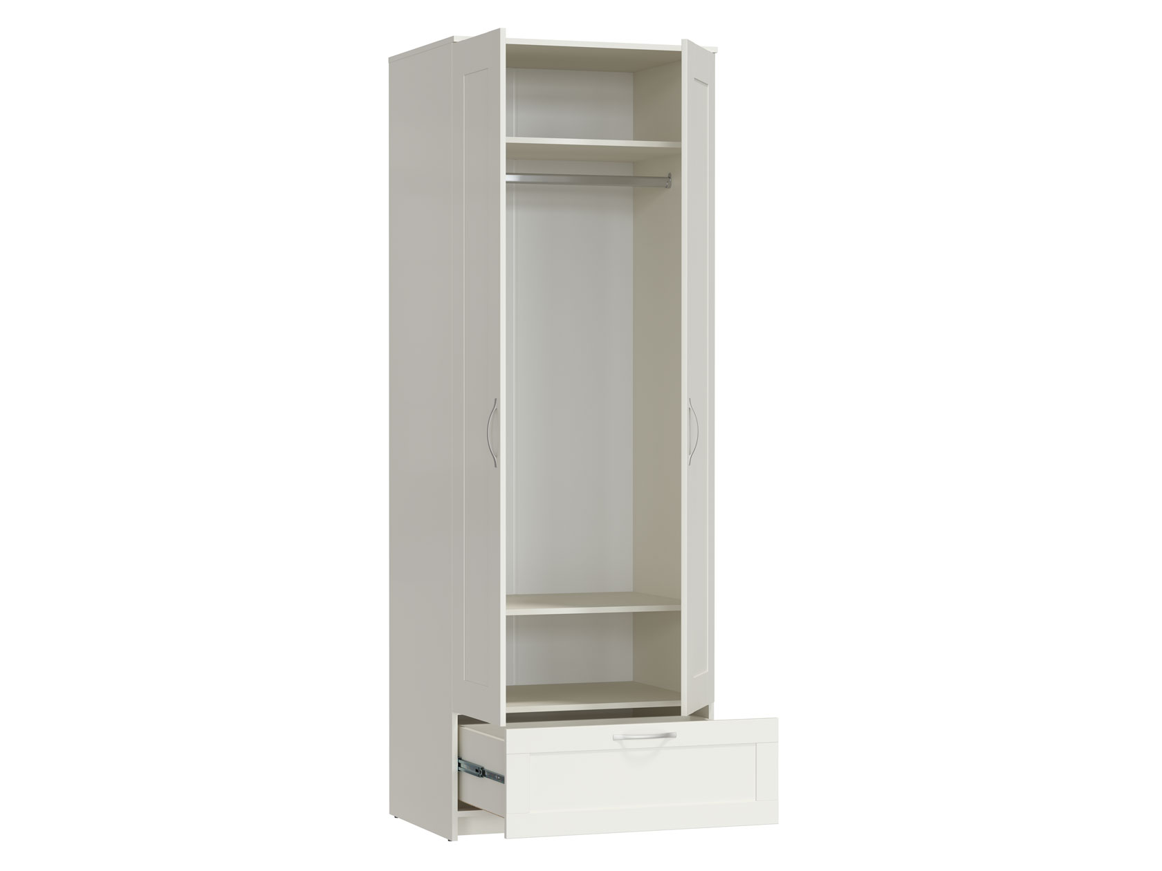 Распашной шкаф Нордик Стандарт позволит создать продуманную систему хранения. Внутри расположено отделение со штангой для вешалок, что позволяет развесить одежду любой длины. Удобные полки и выдвижной ящик помогут разместить обувь и сезонные вещи. Элегантный дизайн легко адаптировать под разные интерьерные стили.