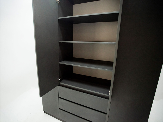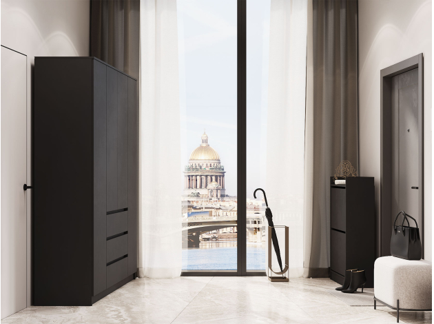 Распашной шкаф Охта Лайт поможет поддерживать порядок и аккуратно хранить одежду и обувь. Минималистичный дизайн отлично впишется в современный интерьер. Комбинированное наполнение представлено двумя отделениями с продольными штангами для вешалок, широкими полками для сложенной одежды и вместительными ящиками, которые плавно и бесшумно выдвигаются на всю глубину, обеспечивая удобный доступ к содержимому.