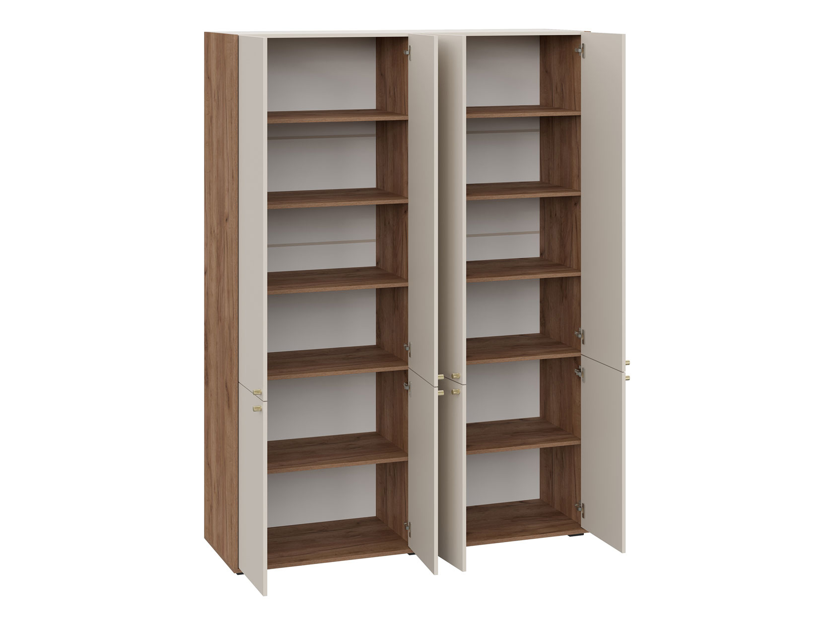 Распашной шкаф Орма Практик поможет организовать вместительную систему хранения любых предметов гардероба. Отделения за распашными дверцами позволяют развесить одежду на плечиках и сложить всё необходимое на полках. В дизайне сделан акцент на сочетание контрастных текстур. Древесный оттенок корпуса оттеняют матовые фасады с золотистой фурнитурой, что придает пространству особые шарм и элегантность.