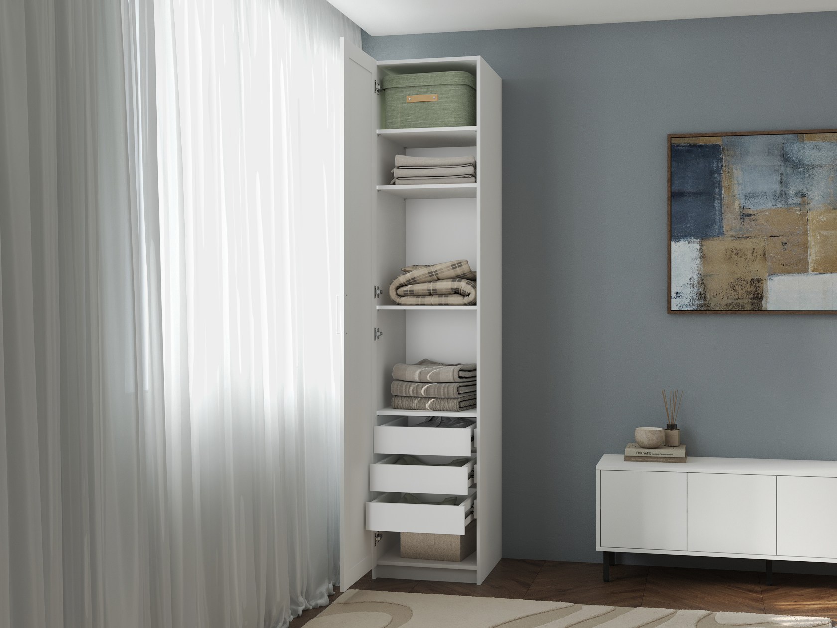 Пенал Осло Белый С четырьмя полками и тремя ящиками