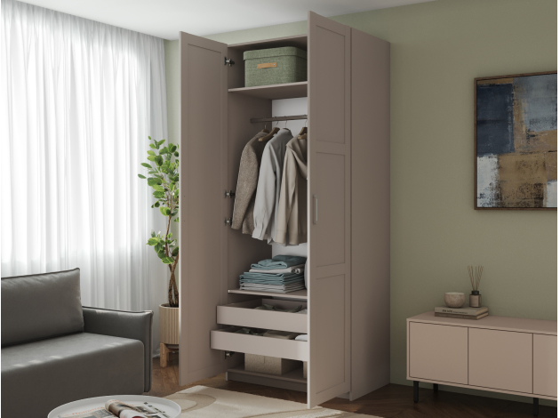 Распашной шкаф Осло Комби Персидский жемчуг Со штангой, двумя полками и двумя ящиками