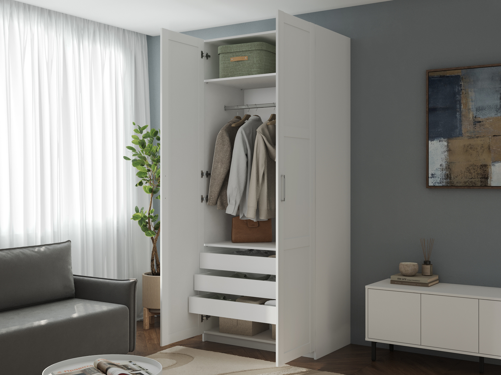 Распашной шкаф Осло Комби станет компактным решением для аккуратного хранения гардероба. Рамочные фасады с лаконичными ручками добавляют интерьеру элегантности и не требуют сложного ухода.