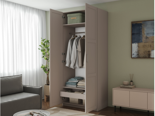 Распашной шкаф Осло Комби Персидский жемчуг Со штангой, двумя полками и ящиком
