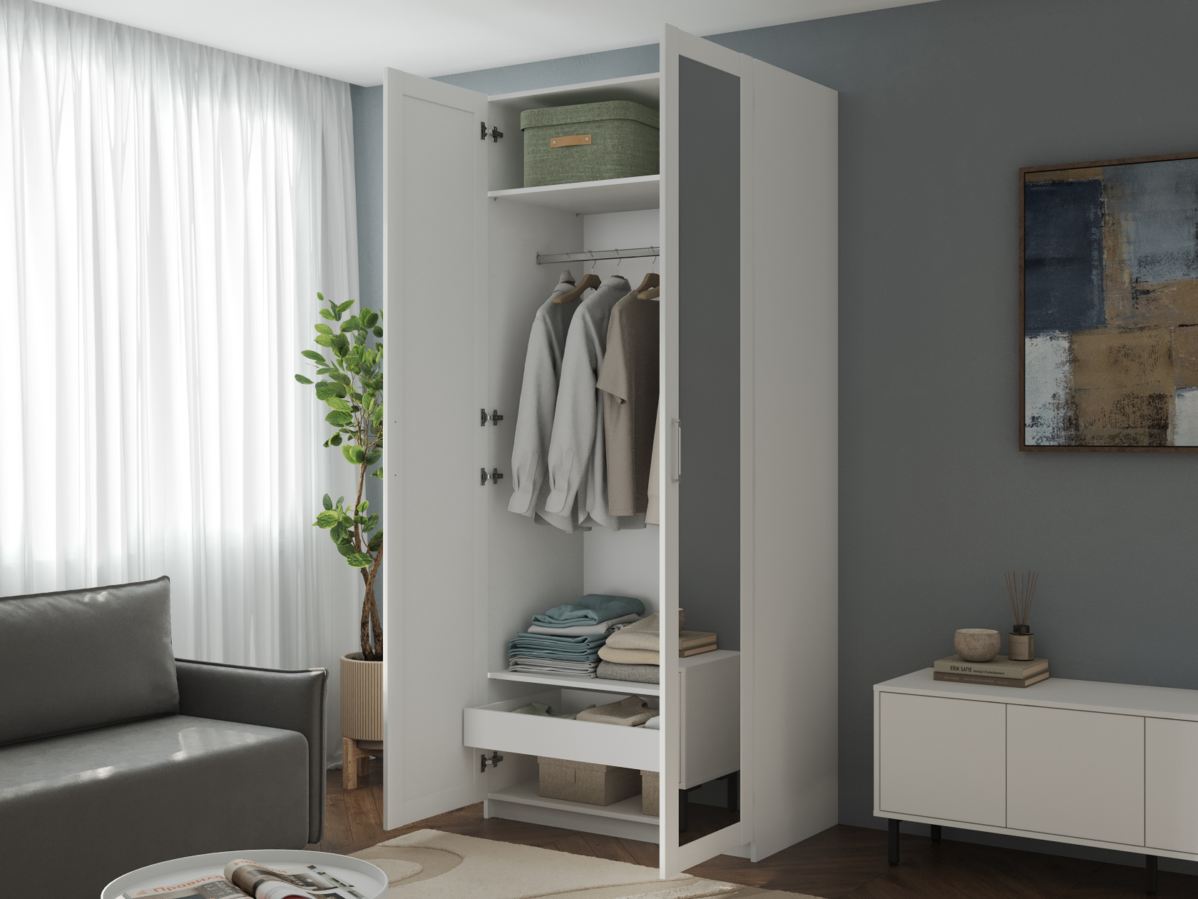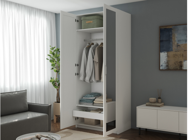 Распашной шкаф Осло Белый Со штангой, двумя полками и ящиком