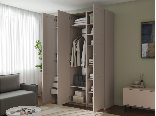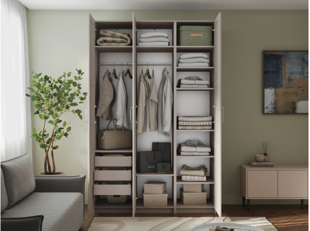Распашной шкаф Осло Трио Персидский жемчуг С полками, двумя штангами и тремя ящиками