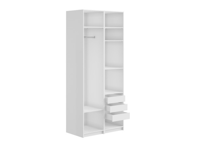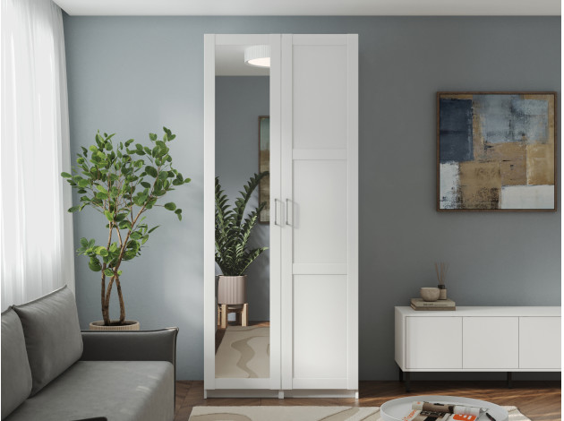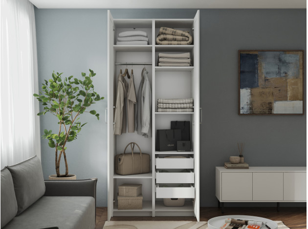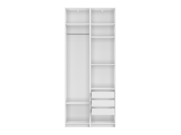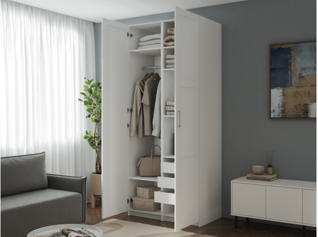 Распашной шкаф Осло Дуо поместится в небольшой комнате. Штанги для одежды позволяют аккуратно хранить рубашки, платья и костюмы, а полки и ящики помогают распределить остальные вещи. Фасады с четкой геометрией линий универсальны для разных стилей интерьера. Полноразмерное зеркало добавляет пространству глубины и делает модель не только эстетичным, но и практичным элементом обстановки.