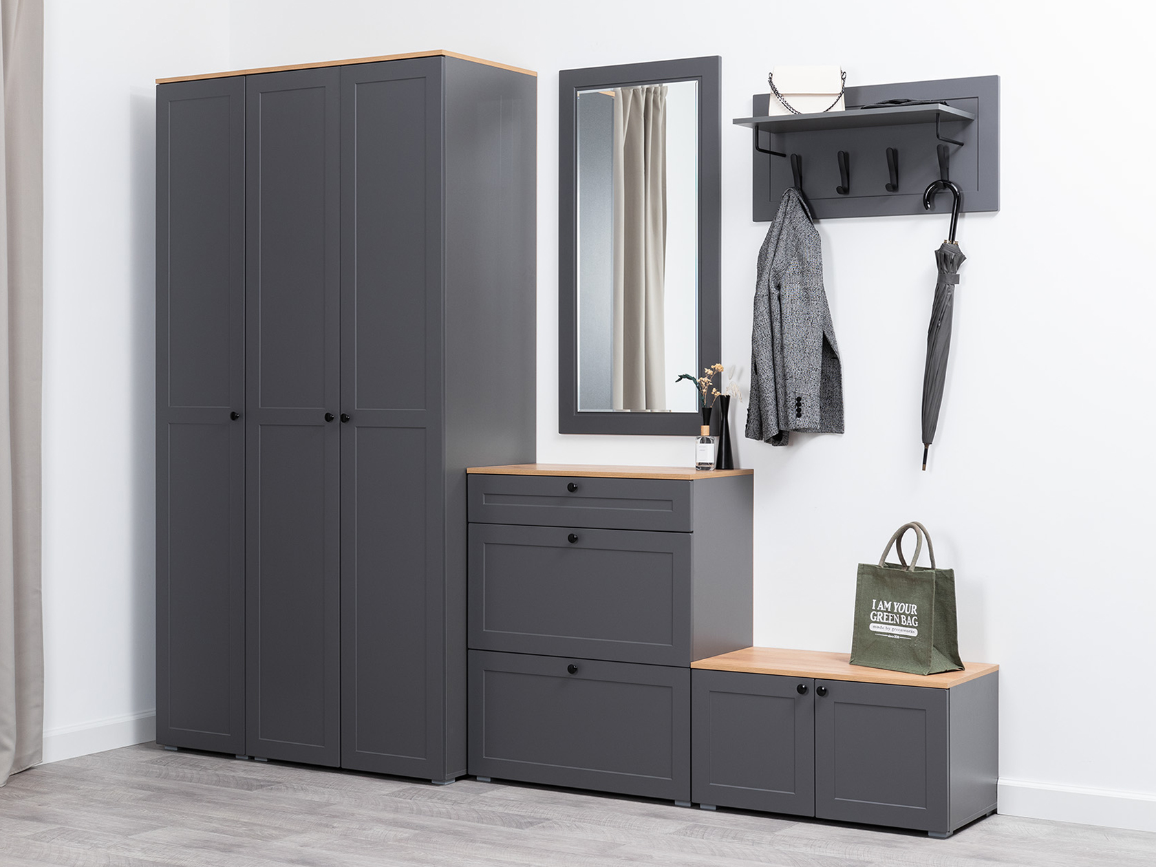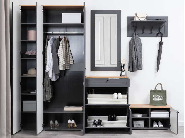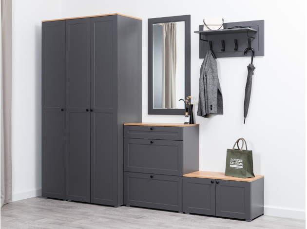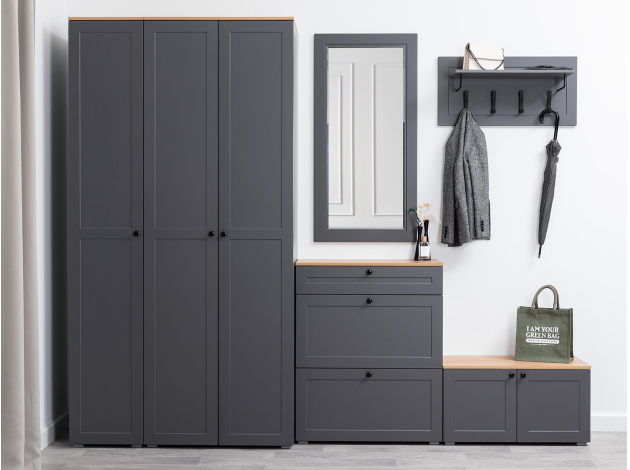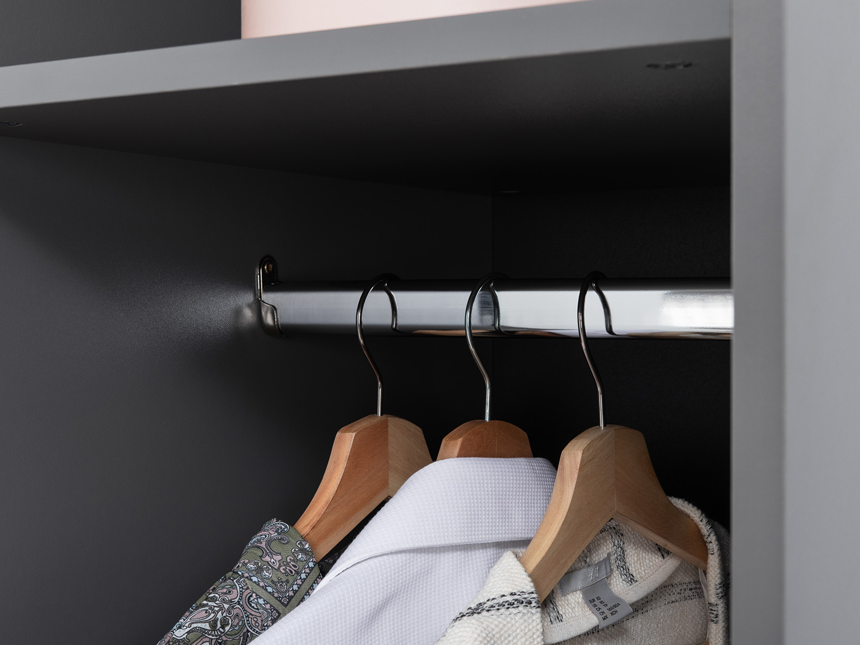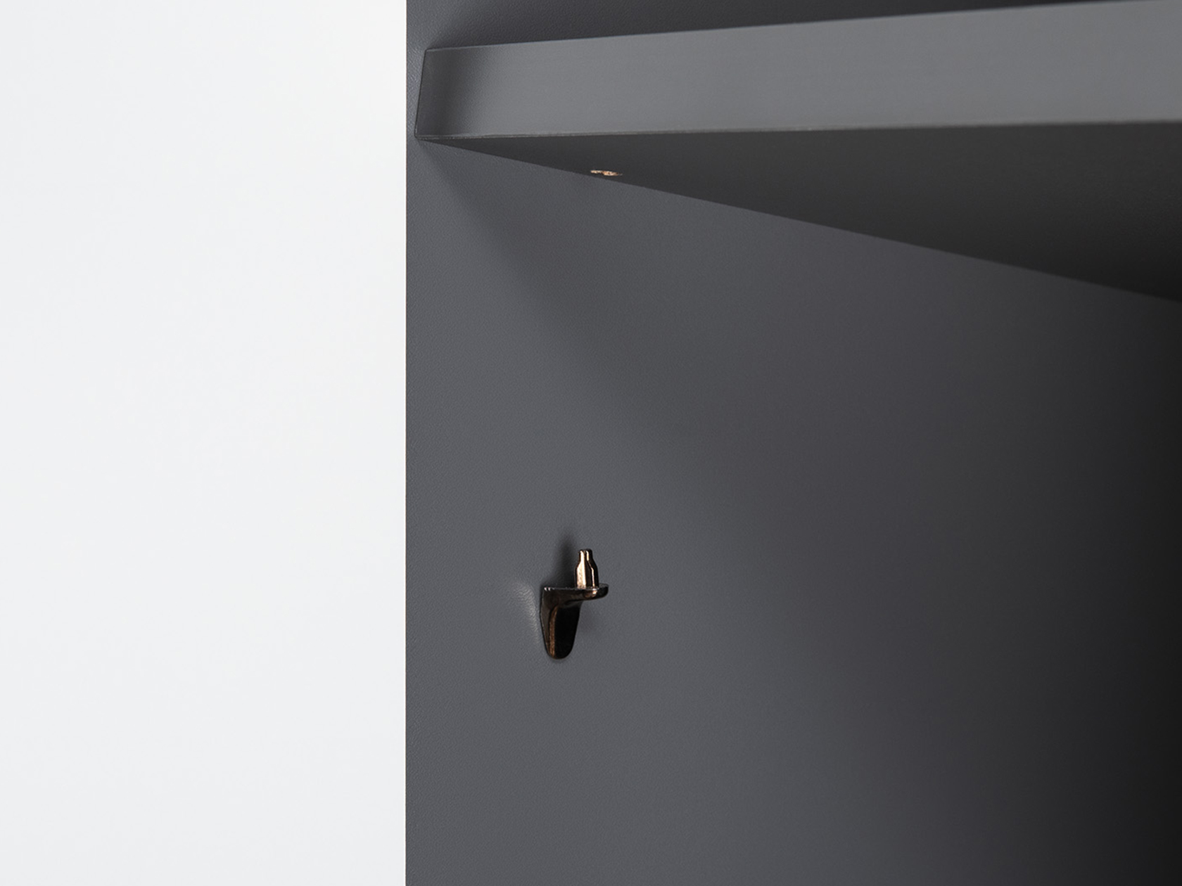 Распашной шкаф Остин станет компактным решением для упорядоченного хранения гардероба. Внутреннее наполнение предусматривает ряд полок для сложенной одежды и продольную штангу для вешалок. Опоры регулируются по высоте, что позволит разместить модель на полу с неровностями.
