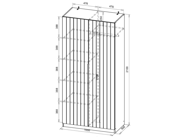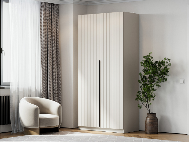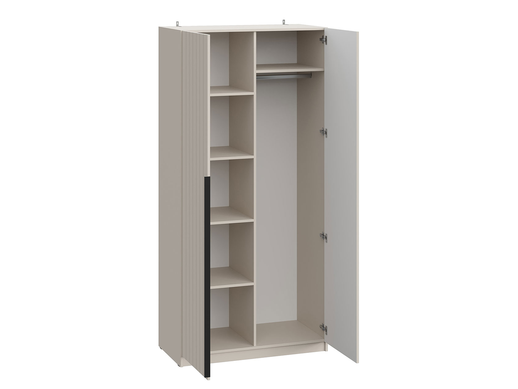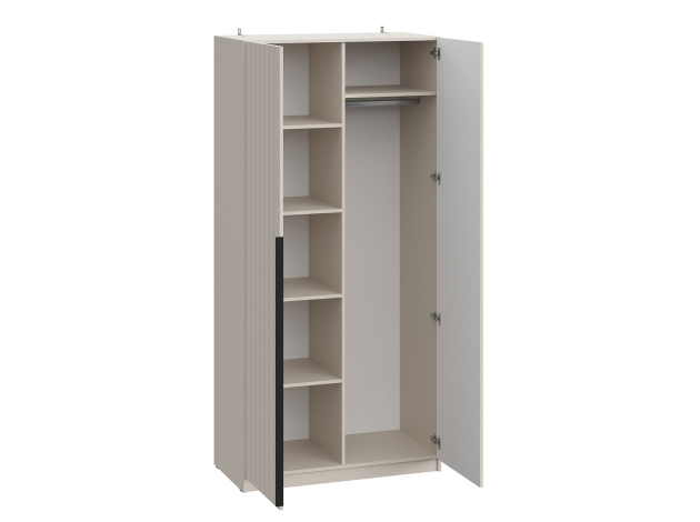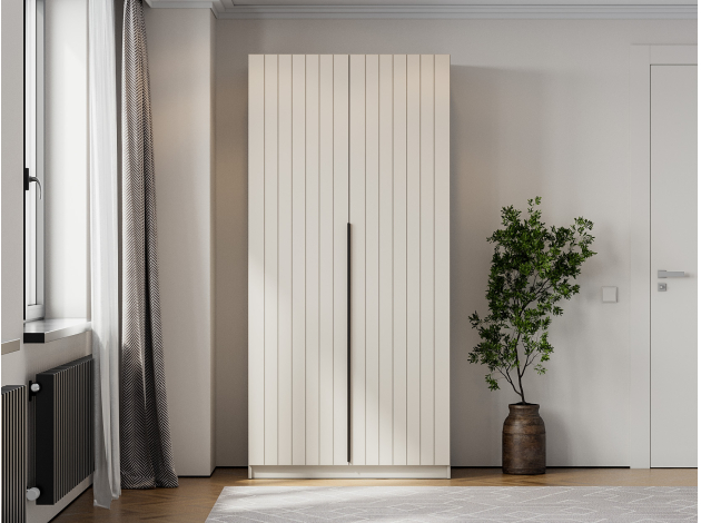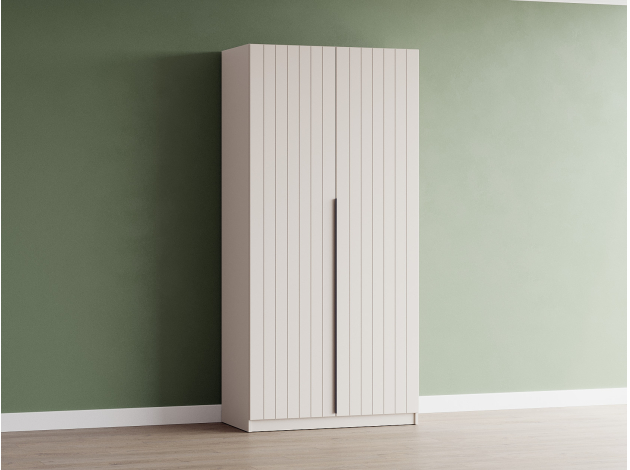 Распашной шкаф Памир поможет поддерживать порядок на небольшой площади. Модель со штангой и полками позволяет аккуратно хранить разные категории одежды: от платьев до спортивных костюмов. Вертикальная фрезеровка на фасадах и узкая вытянутая ручка придают конструкции современный и актуальный вид.
