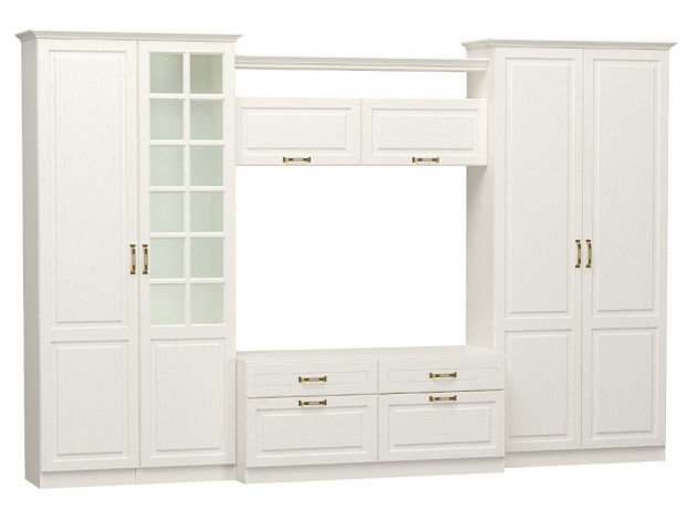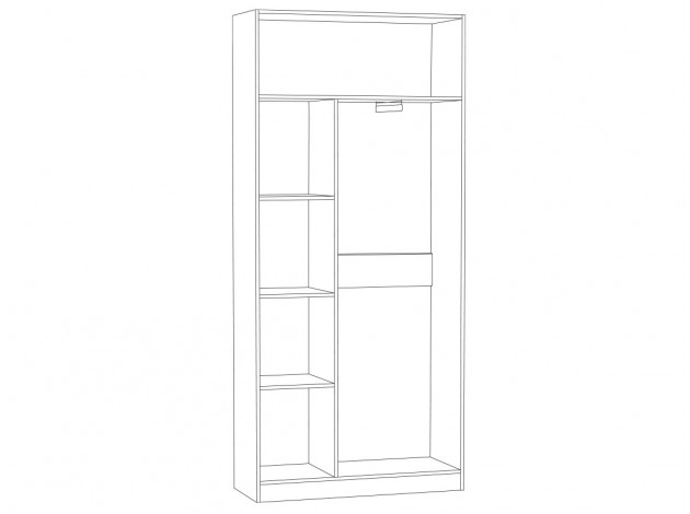 Распашной шкаф Ливерпуль — компактный, но вместительный модуль, в котором легко найдется место для повседневной одежды и сезонных вещей. Внутреннее пространство оснащено поперечной штангой для вешалок и несколькими полками. Светлые фасады гармонично сочетаются с изящными ручками оттенка античной бронзы.