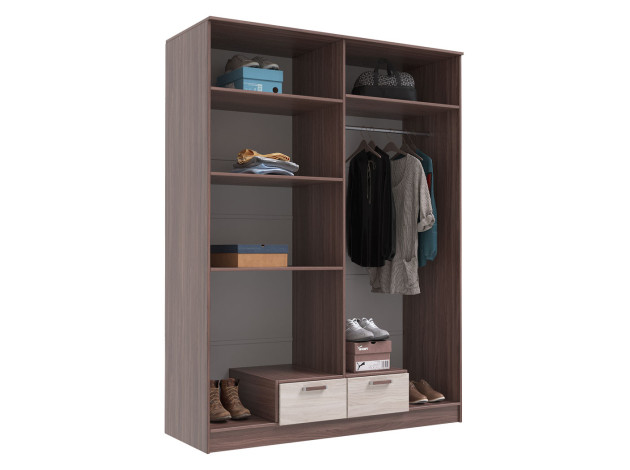 Распашной шкаф Адель Ясень Шимо темный / Ясень Шимо светлый С полками и штангой