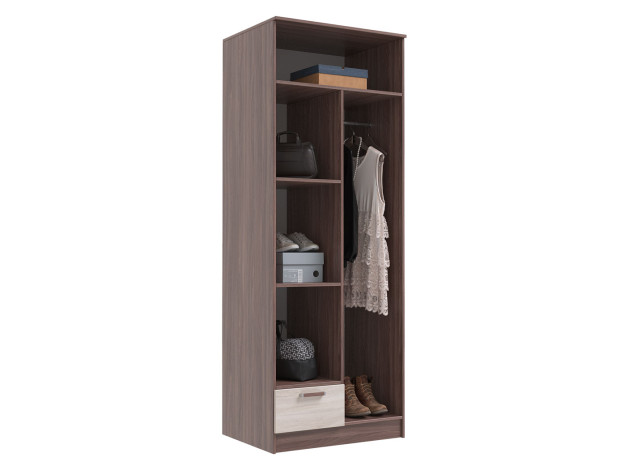 Распашной шкаф Адель Ясень Шимо темный / Ясень Шимо светлый С полками и штангой