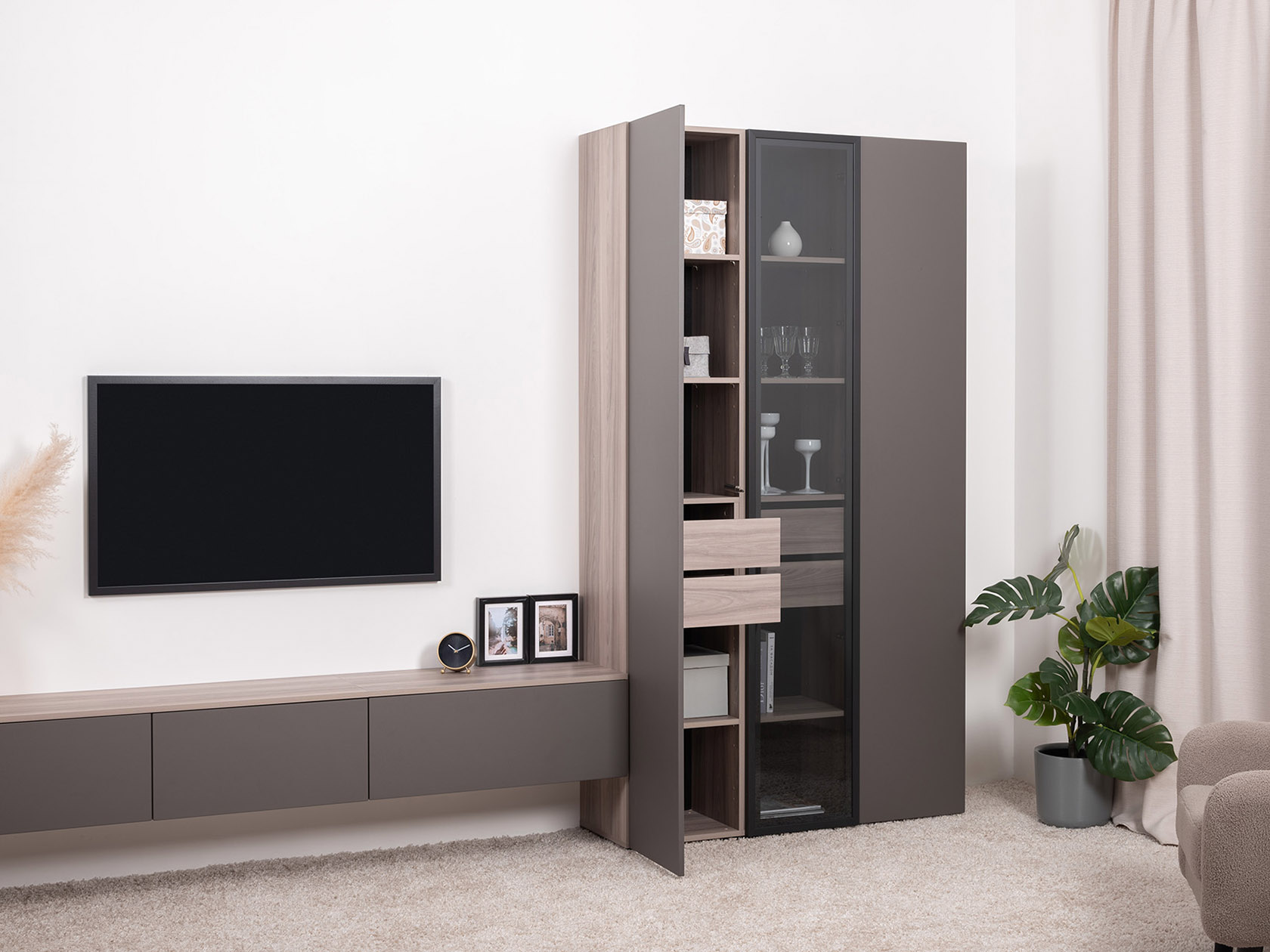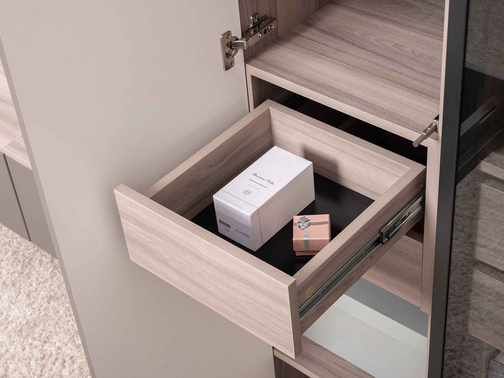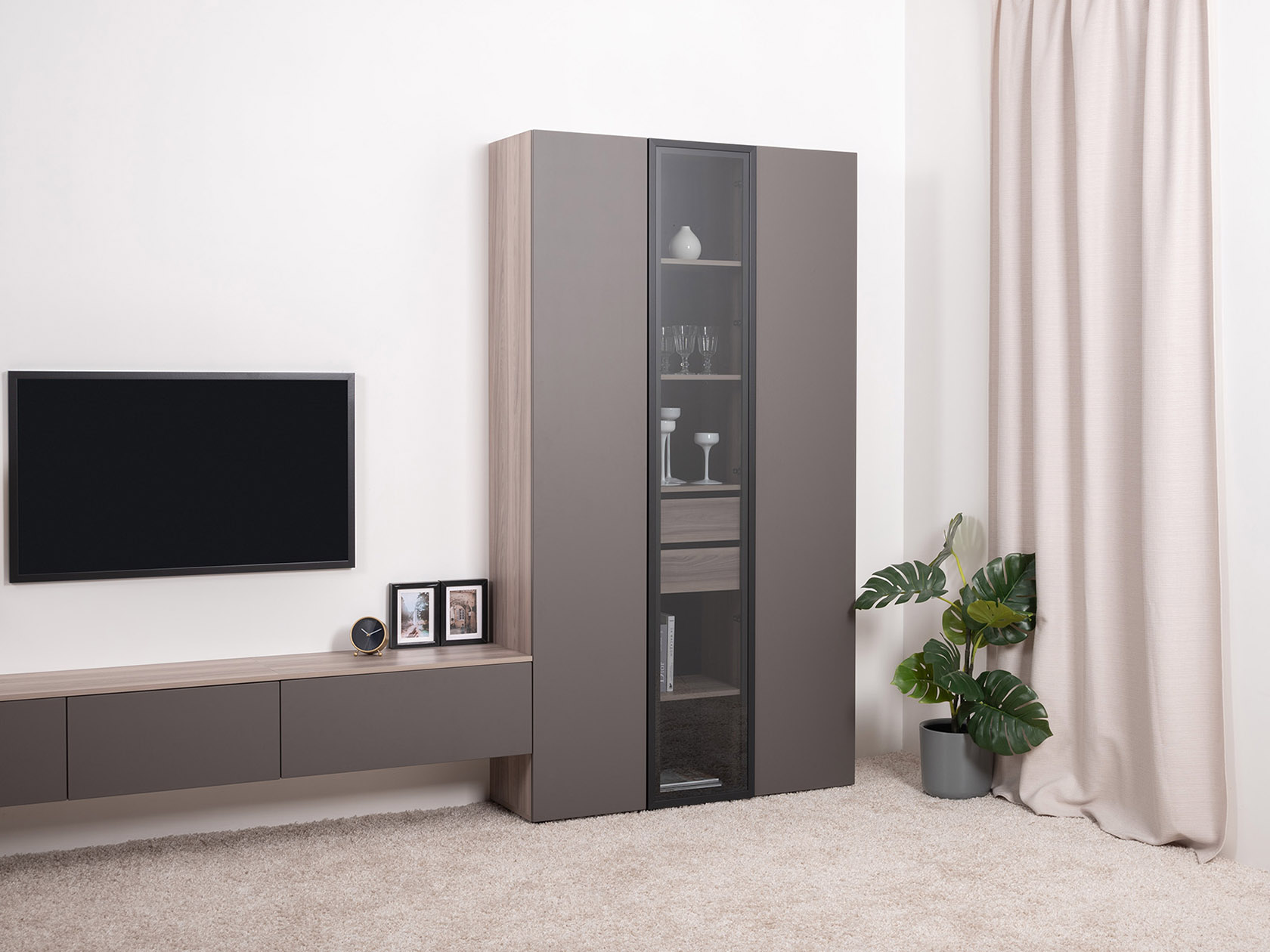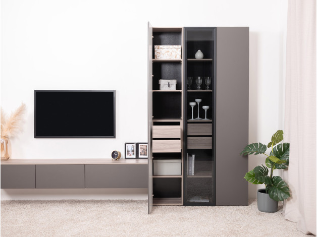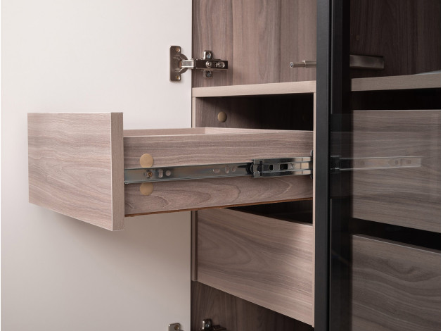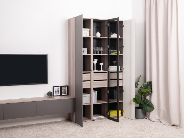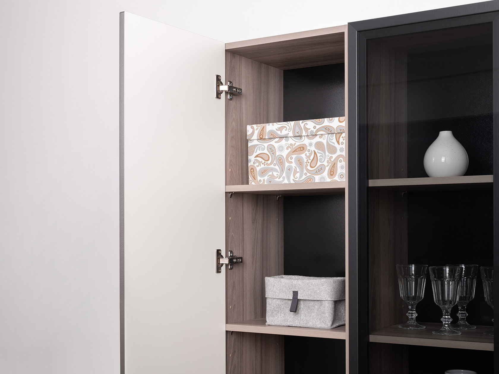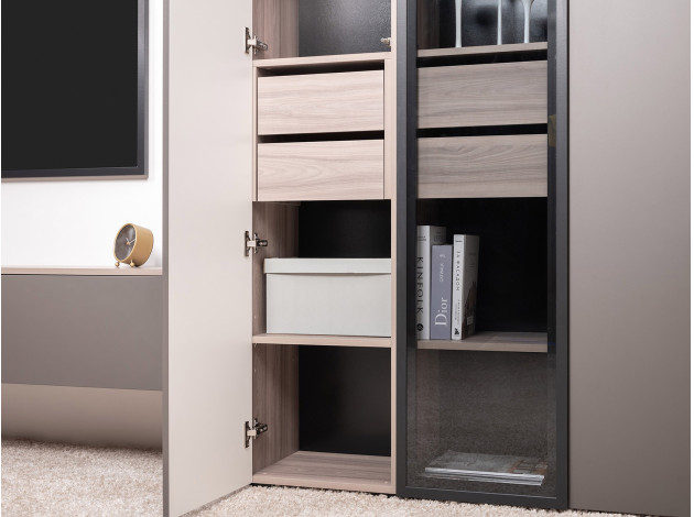 Распашной шкаф Роквуд — продуманная и удобная модель для хранения. Узкая конструкция легко интегрируется в ограниченное пространство. Высоту полок можно менять, настраивая их под индивидуальные потребности. Выдвижные ящики подходят для разных мелочей. Матовый фасад без ручек актуально смотрится в современном интерьере.
