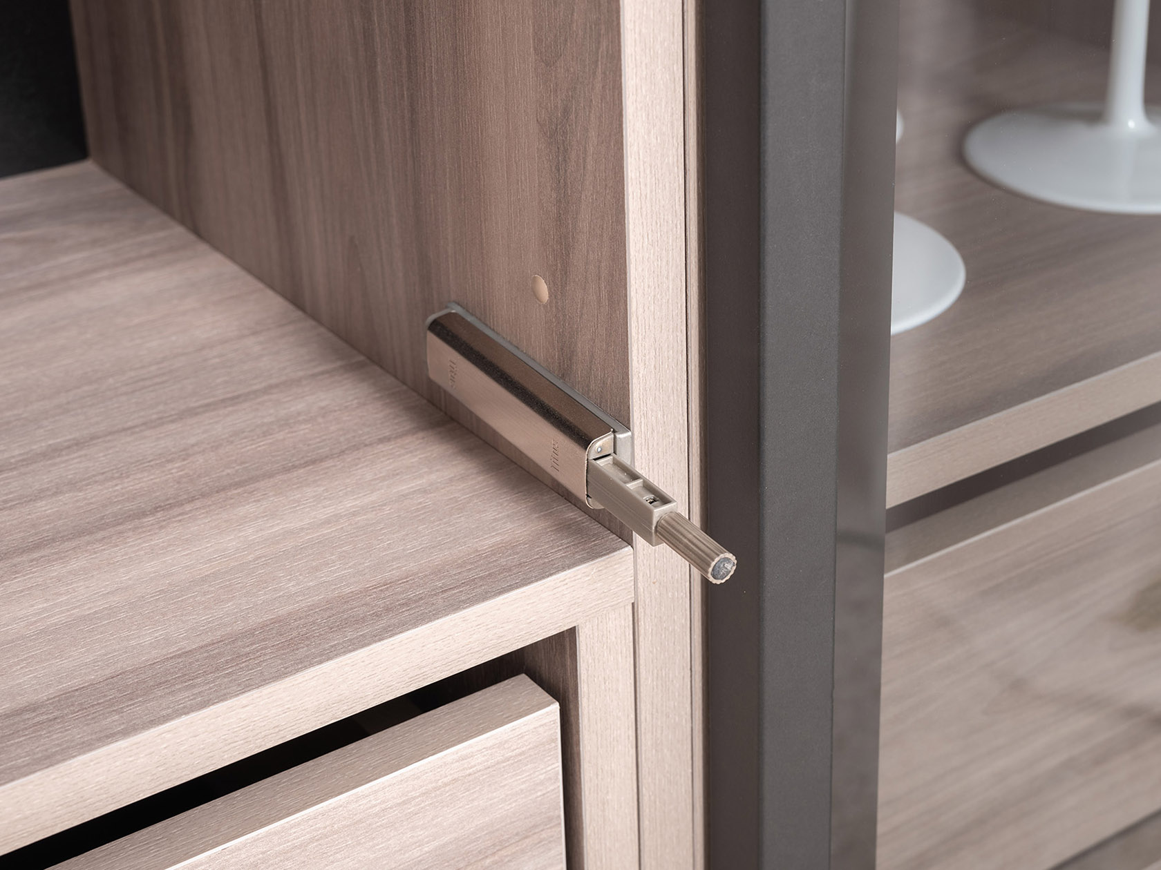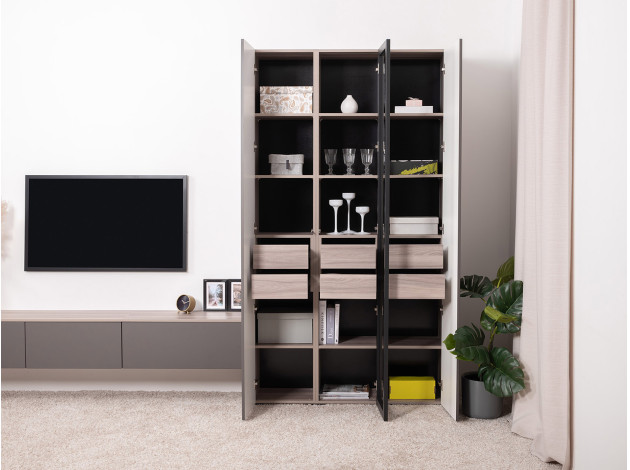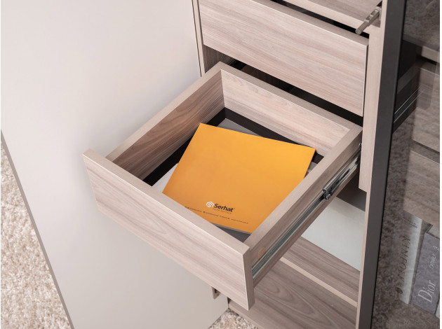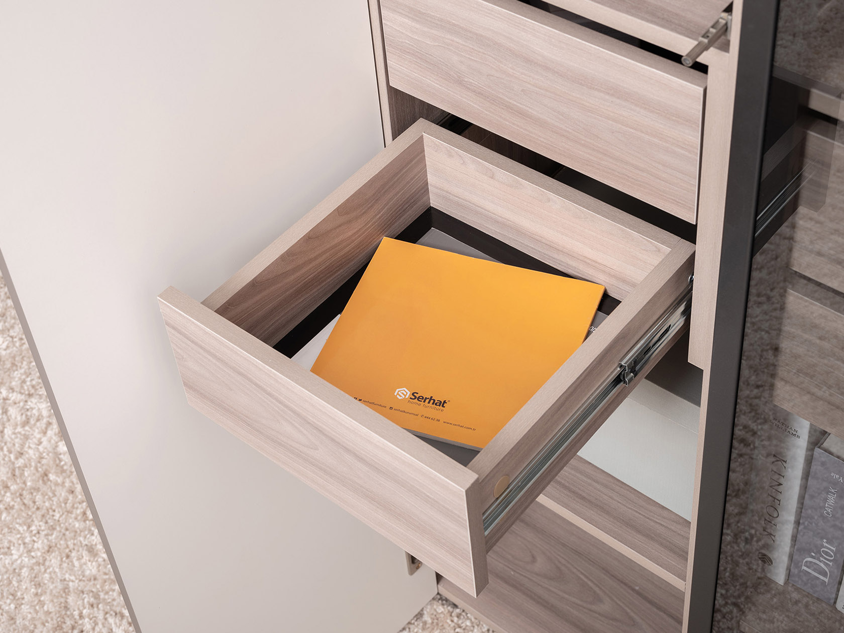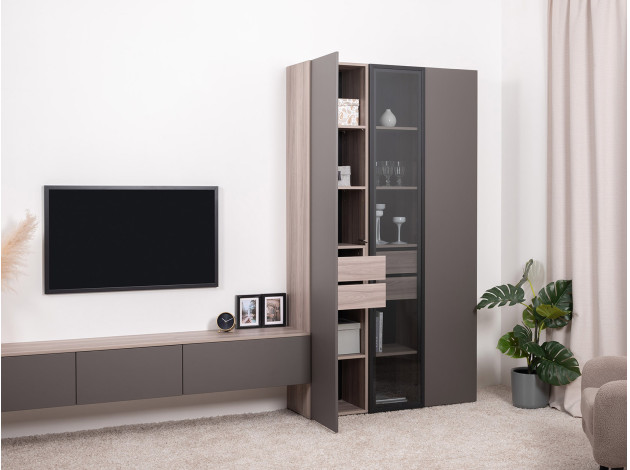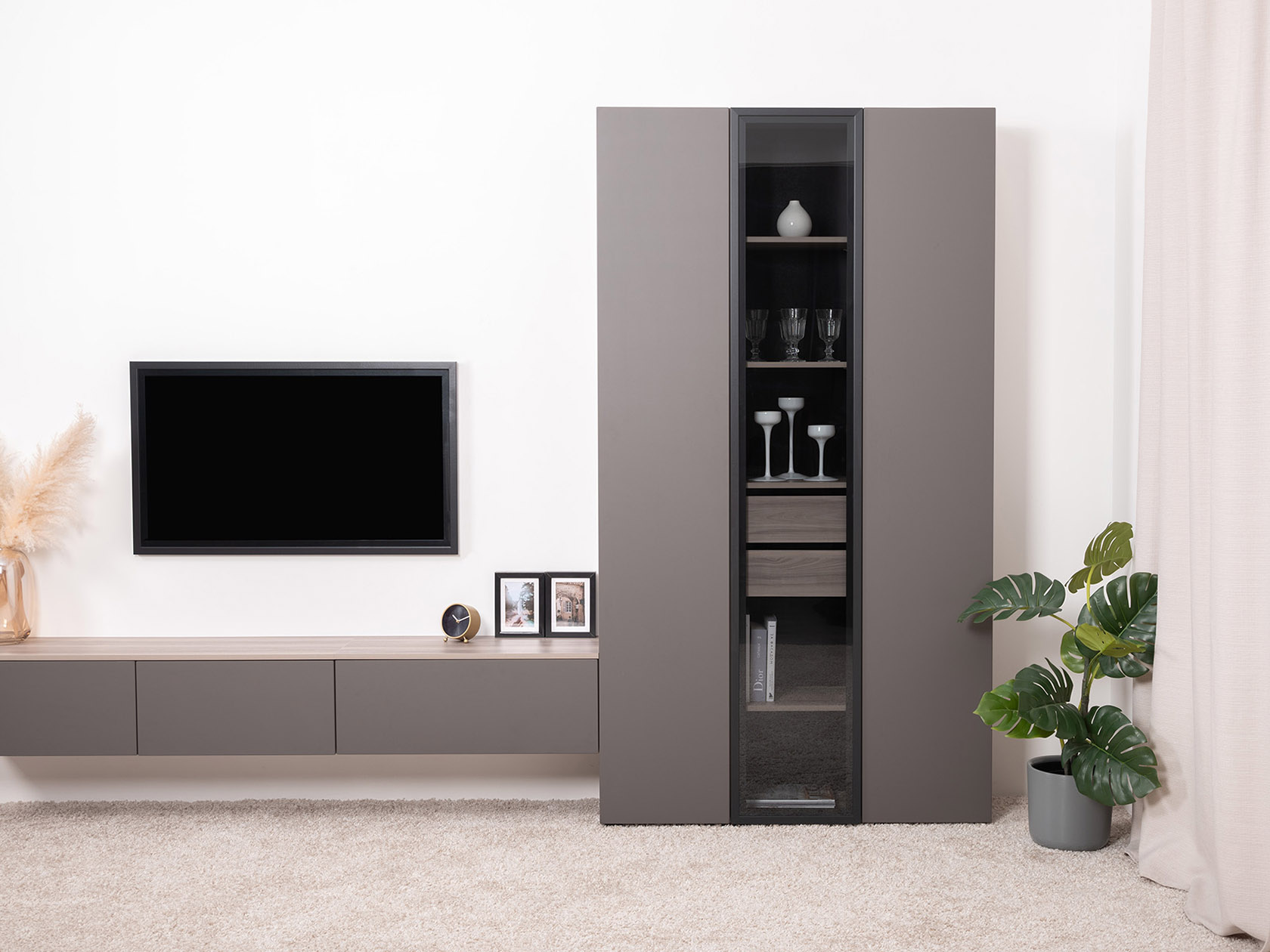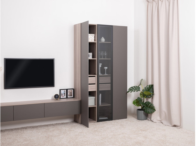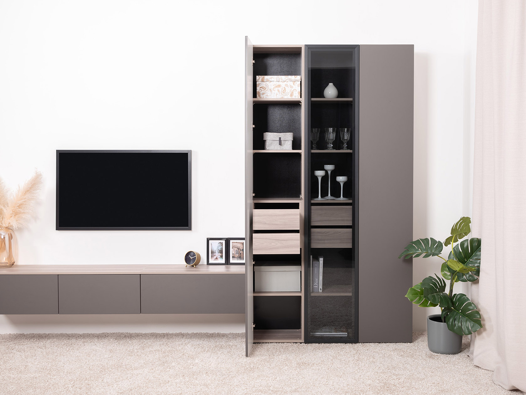 Распашной шкаф Роквуд — продуманная и удобная модель для хранения. Узкая конструкция легко интегрируется в ограниченное пространство. Высоту полок можно менять, настраивая их под индивидуальные потребности. Выдвижные ящики подходят для разных мелочей. Матовый фасад без ручек актуально смотрится в современном интерьере.