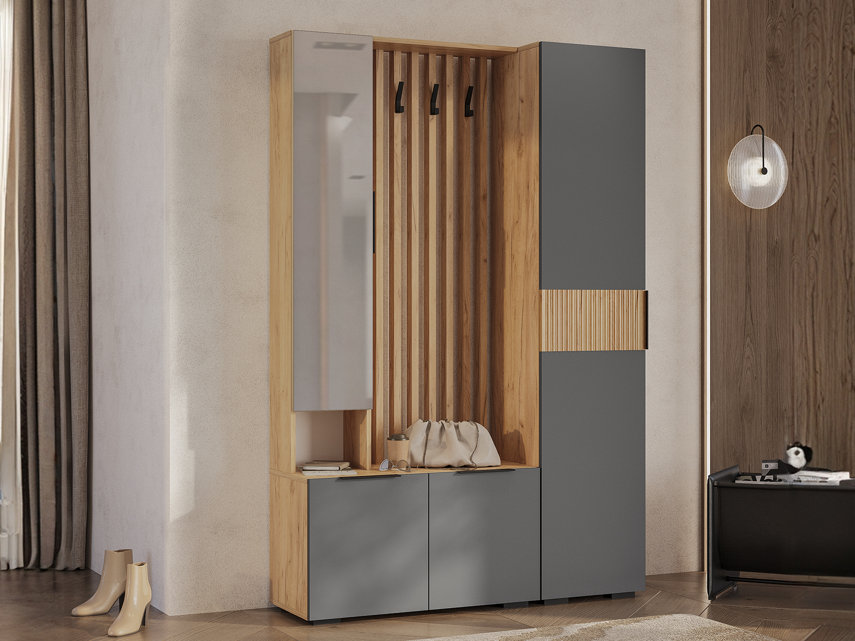 Шкаф-пенал Сандра Дуб Крафт / Графит
