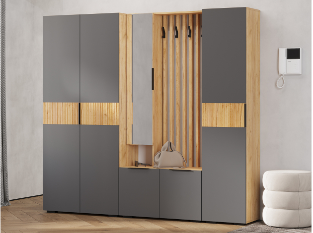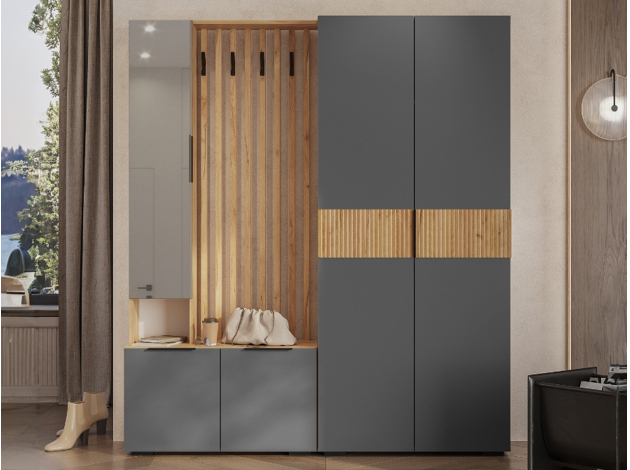 Распашной шкаф Сандра Дуб Крафт / Графит Без антресоли