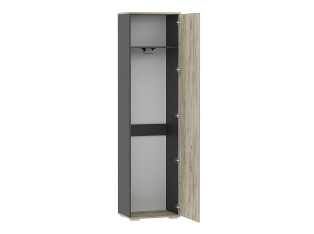 Распашной шкаф Санти — удачное решение для малогабаритной прихожей. Благодаря небольшой глубине модель экономит пространство, а продуманное наполнение позволяет удобно разместить предметы гардероба. Декор фасада имитирует текстуру натурального дерева, поэтому смотрится очень уютно в любом интерьере.