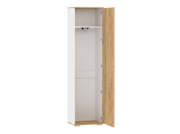 Распашной шкаф Санти — удачное решение для малогабаритной прихожей. Благодаря небольшой глубине модель экономит пространство, а продуманное наполнение позволяет удобно разместить предметы гардероба. Декор фасада имитирует текстуру натурального дерева, поэтому смотрится очень уютно в любом интерьере.