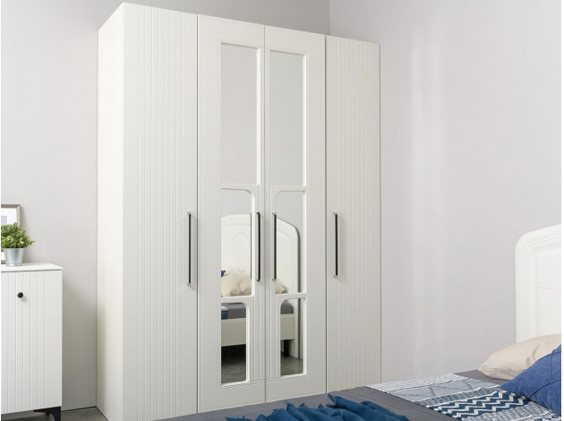 Распашной шкаф Валенсия привлекает внимание необычным дизайном зеркальных вставок и ажурной фрезеровкой. Дверцы с доводчиками закрываются плавно и бесшумно, а универсальное оснащение с просторной нишей и двумя вместительными полками отлично подходит для хранения повседневной одежды.
