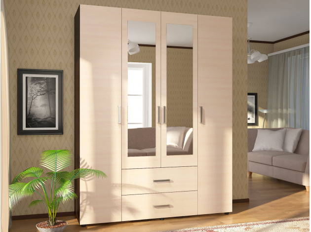 Шкаф Эва 4 подойдет для большой семьи, так как в нем можно разместить множество различных вещей. Неброский дизайн идеально впишется в любую спальню или прихожую.