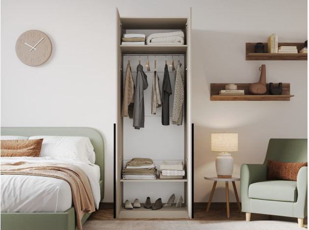 Распашной шкаф Сиена Нью Кашемир Со штангой и двумя полками