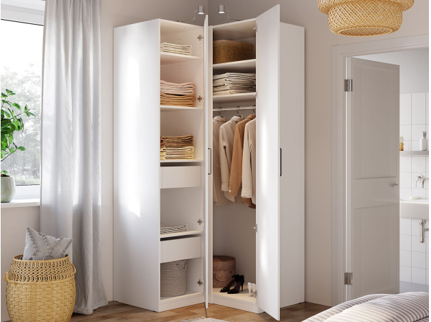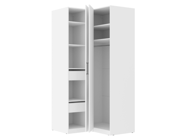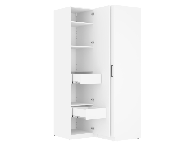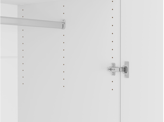 Распашной шкаф Сиена объединяет две вместительные секции для хранения. Несколько полок, ниша со штангой и пара выдвижных ящиков помогут удобно разместить любые предметы гардероба. Минималистичные фасады дополнены стильными контрастными ручками.
