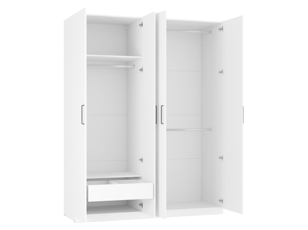 Распашной шкаф Сиена выполнен в лаконичном стиле, поэтому отлично впишется в любой современный интерьер. Внутреннее наполнение включает в себя три штанги для вешалок, ящик для аксессуаров и антресольную полку, что позволит удобно разместить все необходимые вещи.