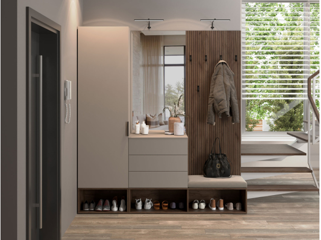 Фасады распашного шкафа Сингапур устойчивы к повреждениям и долго сохраняют первоначальный вид. Небольшая ниша в нижней части позволит удобно разместить повседневную обувь, а на полках удобно хранить одежду и текстиль. Шкаф достаточно компактный, поэтому подойдет для небольшой комнаты.