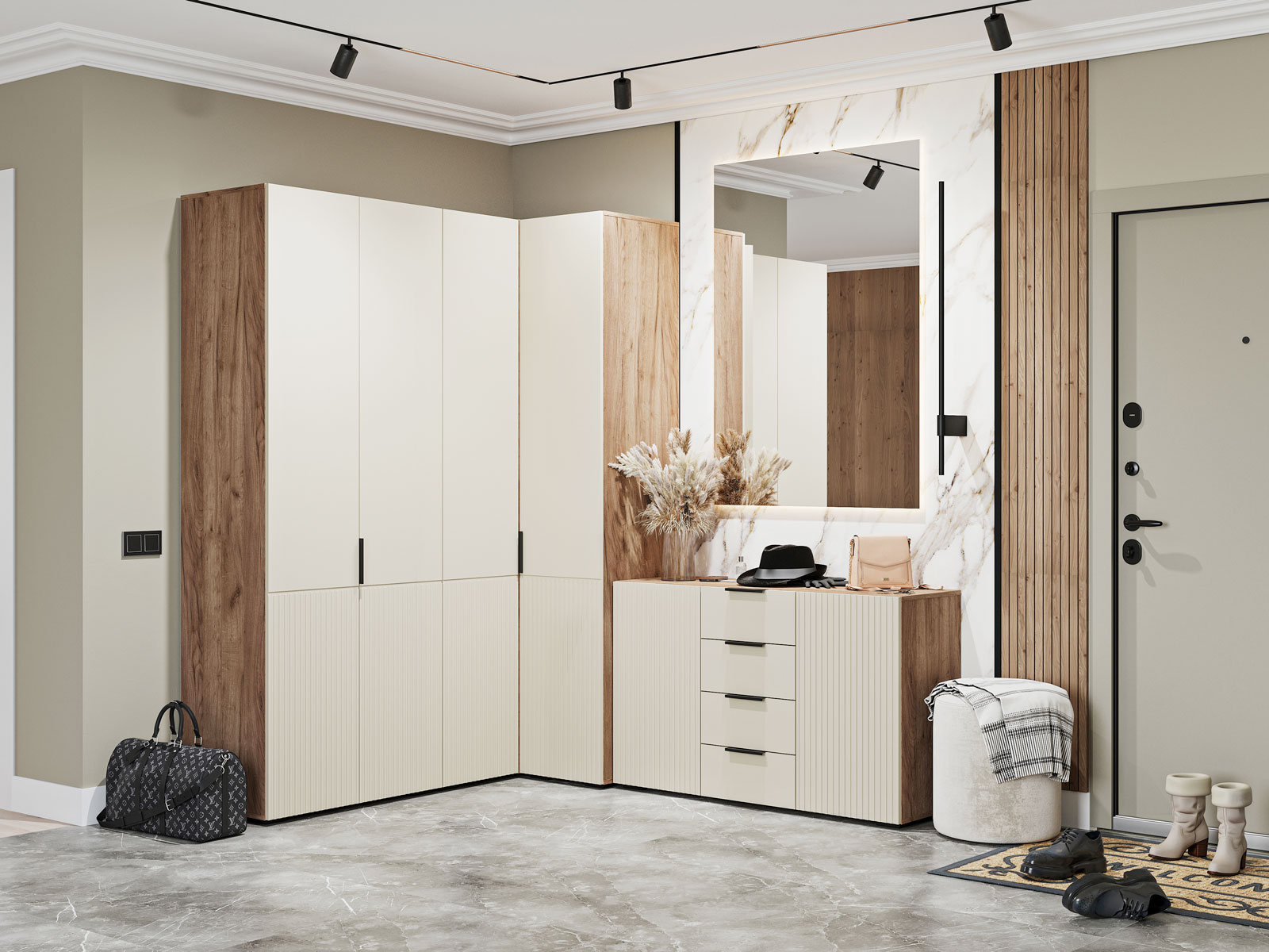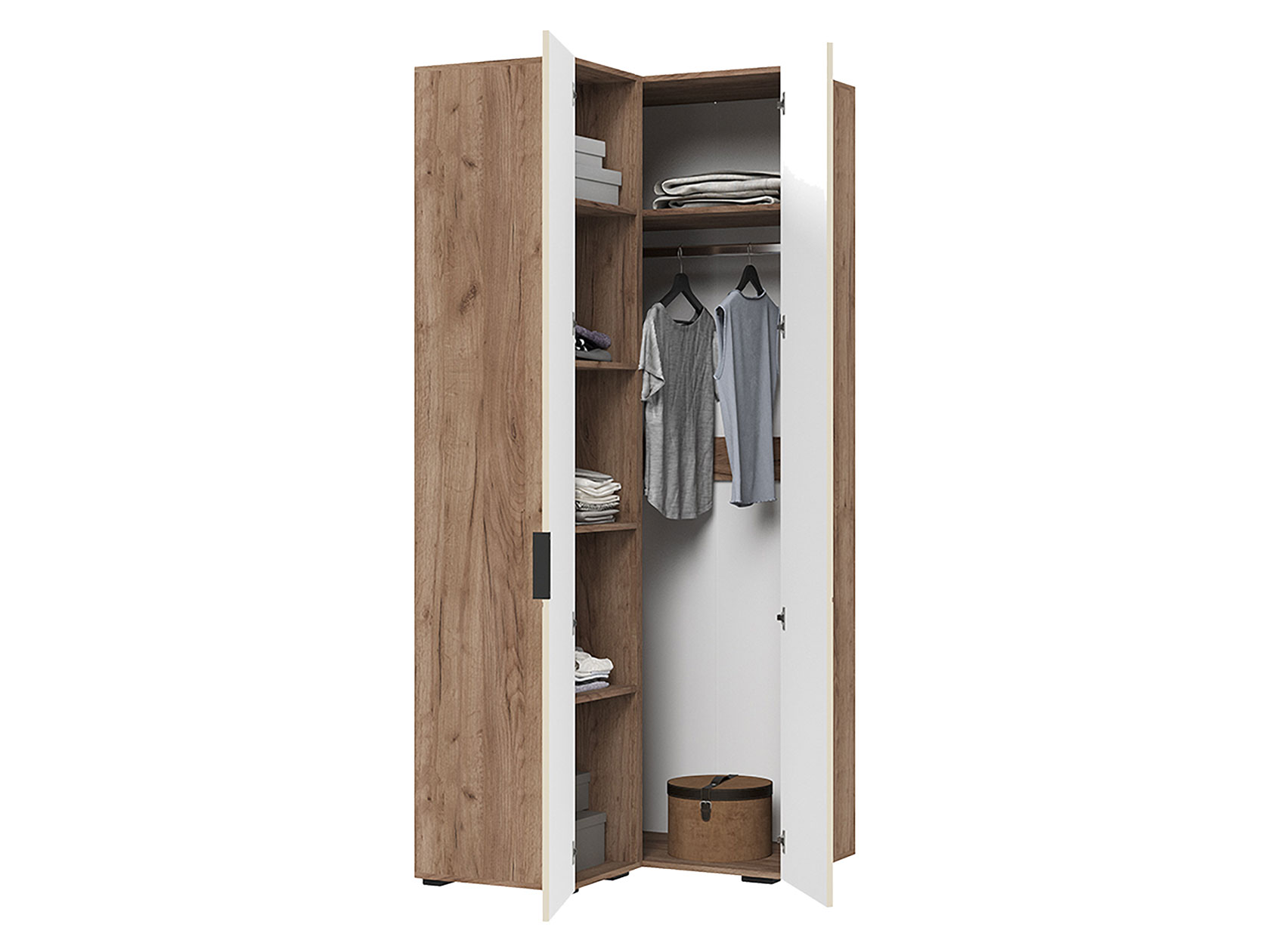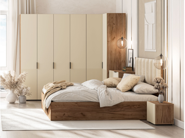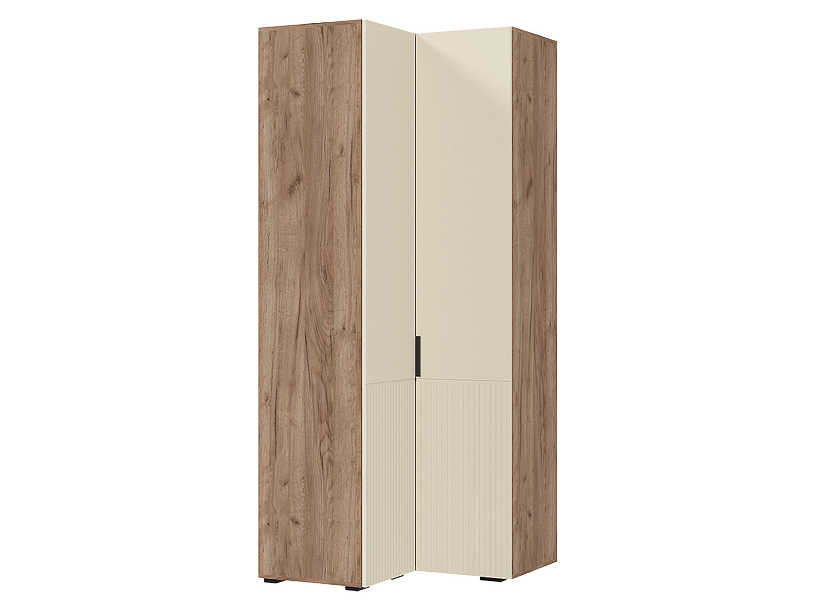 Угловой шкаф Соната поможет оптимизировать пространство благодаря удобной конструкции. Вместительная модель включает отделение с полками и секцию со штангой, что позволяет разграничить хранение разных категорий вещей. Вертикальная фрезеровка на фасадах создает ощущение легкости и простора, а фактура дерева адаптируется под любой интерьер.