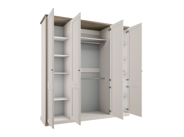 Распашной шкаф Тоскана Нью Стандарт — вместительная модель для хранения самых разных предметов гардероба. Внутри расположены ниша со штангами, где удобно развесить одежду любой длины, и секции с полками. Фасады декорированы изящными рамками и лаконичными ручками. Такой дизайн смотрится элегантно и привлекательно. Благодаря доводчикам пользоваться мебелью очень комфортно.