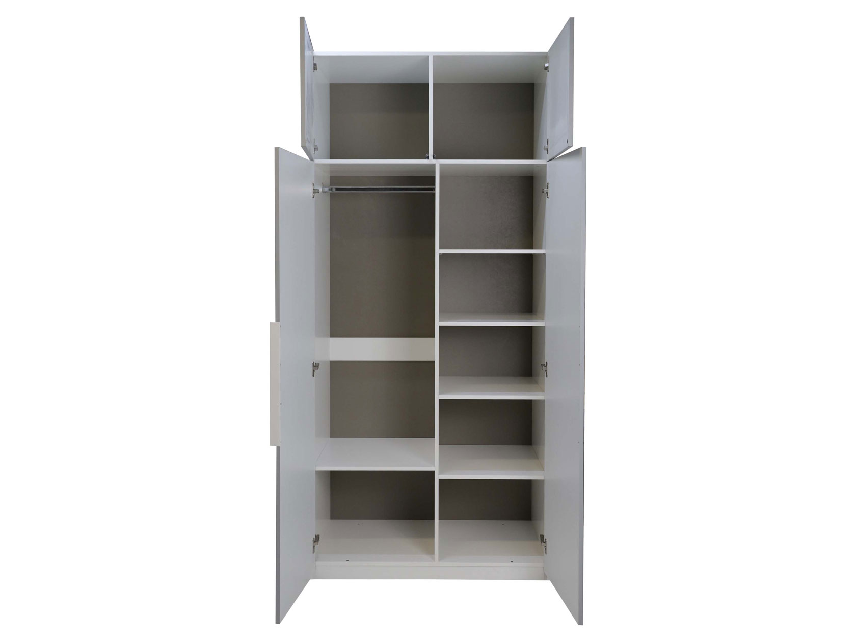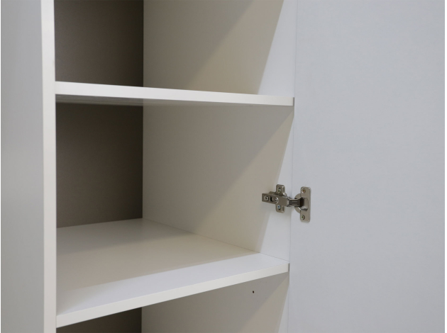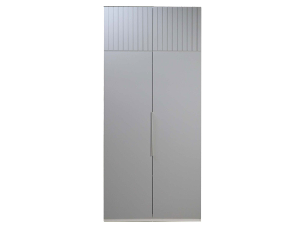 Распашной шкаф Урбан Лайт позволит организовать порядок на ограниченной площади. Внутреннее наполнение представлено двумя отдельными секциями со штангой для плечиков и полками для сложенной одежды. Антресольное отделение подходит для объемных коробок и вещей, которые требуются по сезону. Вертикальная фрезеровка на верхних дверцах и лаконичная торцевая ручка подчеркивают правильную геометрию мебели.