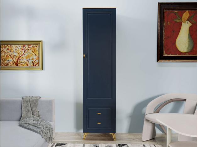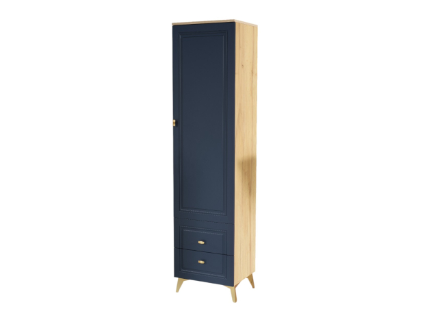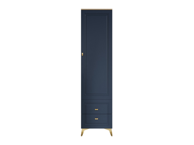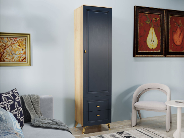 Распашной шкаф Вега Сапфир — изящное решение для интерьера гостиной. Узкая конструкция со строгими рамочными фасадами добавит эстетики и функционала даже небольшой комнате. Комплект полок и выдвижные ящики обеспечат место для предметов гардероба, аксессуаров и украшений.
