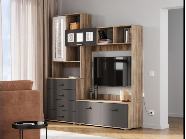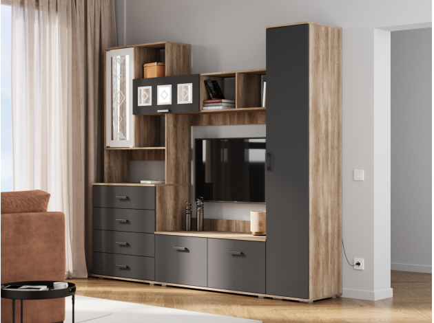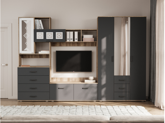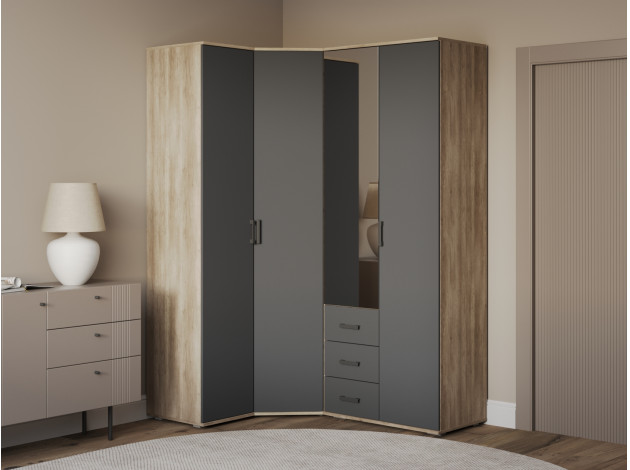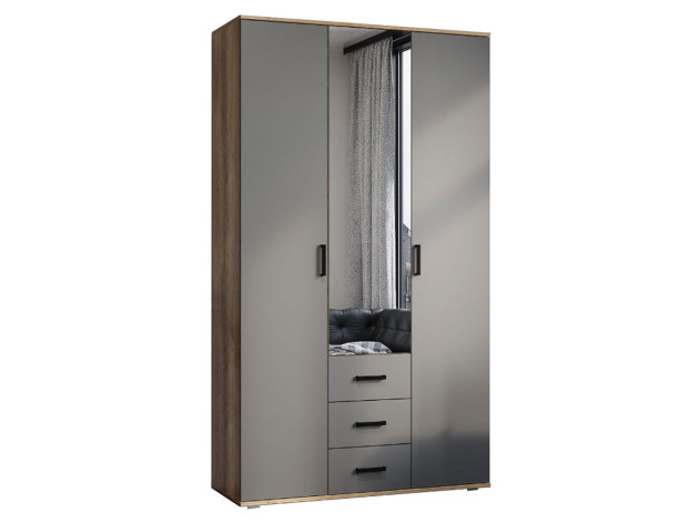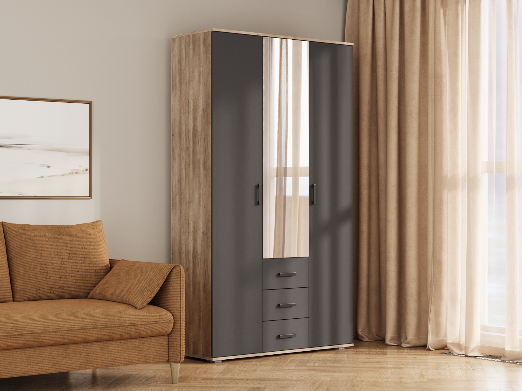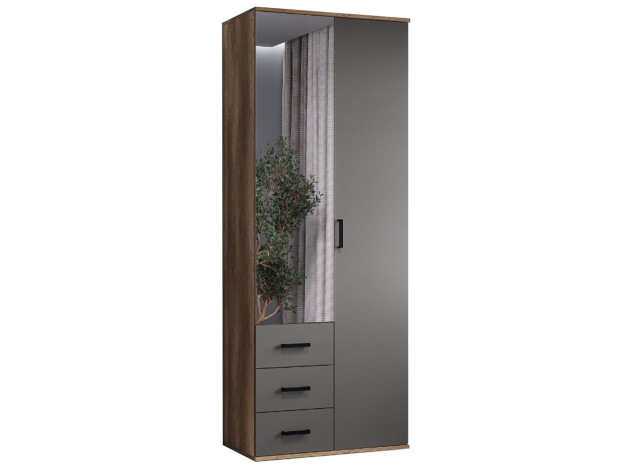 Распашной шкаф Вегас — то, что нужно для практичного хранения предметов гардероба. Внутреннее наполнение представлено антресольной и нижней нишами, продольной штангой, секцией с полками и выдвижными ящиками. Зеркальное полотно сделает пространство объемнее и заменит полноценный предмет мебели.