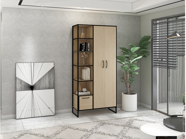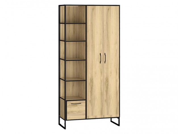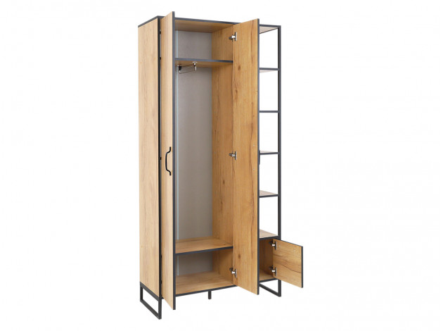 Распашной шкаф Виртон в лаконичном исполнении объединил в себе компактность и функциональность. Внутреннее наполнение включает отделение с выдвижной штангой для плечиков и полками для обуви и сезонных вещей. В открытых и закрытых нишах можно удобно расположить различные мелочи повседневного пользования и предметы декора.