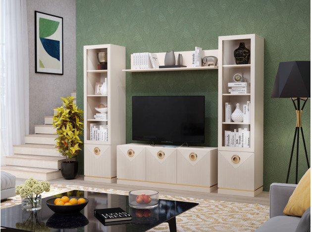 Шкаф-витрина Капри в приятных кремовых тонах эффектно дополнит интерьер гостиной. Дверца со стеклянной вставкой позволит разместить на виду праздничную посуду, сувениры и аксессуары, защищая содержимое от пыли и влаги, а отделение за глухой дверцей — скрыть от посторонних глаз личные вещи. Нижний фасад украшен декоративной фрезеровкой в виде строгих вертикальных линий. Дверцы оснащены петлями с доводчиками, что поможет избежать хлопков и резкого закрывания.