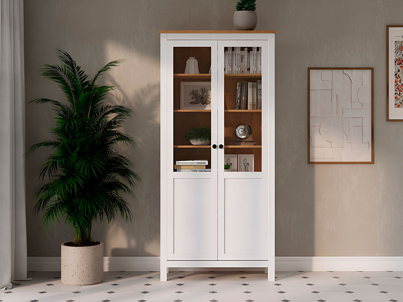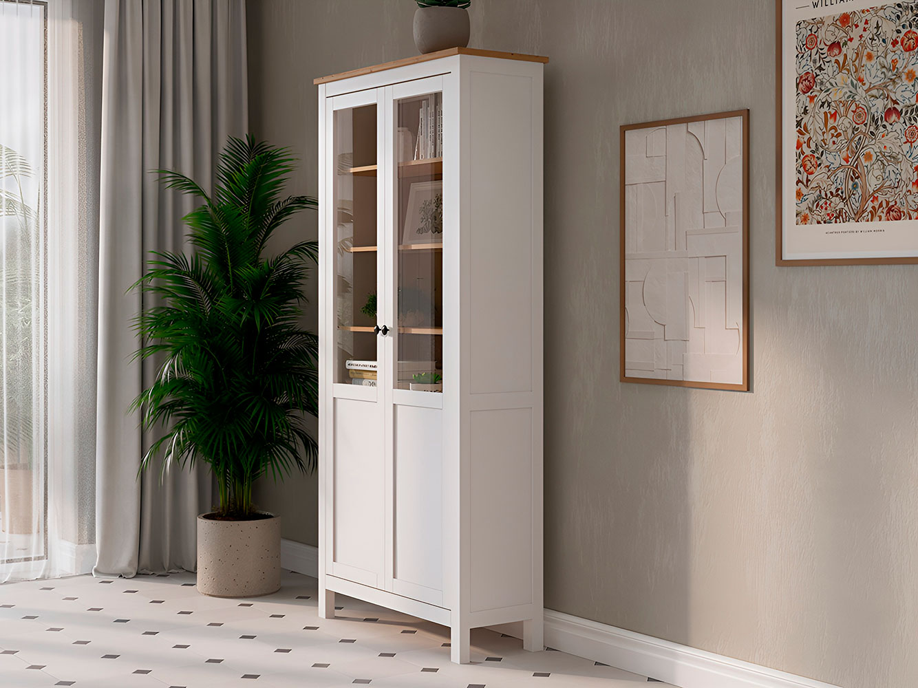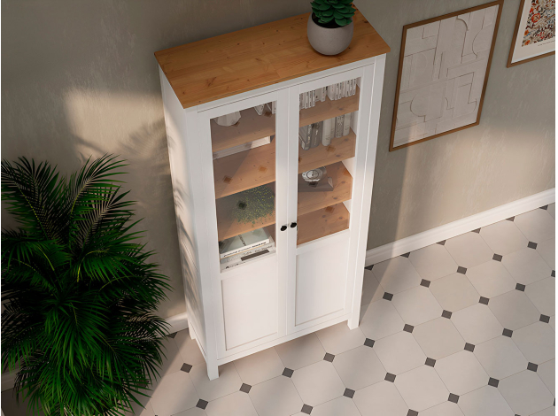 Шкаф-витрина Кымор украсит интерьер и создаст дополнительное место для хранения сервировочной посуды, книг и декора. Мебель из массива дерева обладает особой прочностью, поэтому полки выдерживают большую нагрузку. Витрина выполнена в традиционном дизайне и универсальных оттенках, которые легко сочетаются с разными интерьерами.